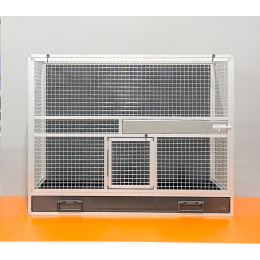 Bednová klec o rozměru šířka 99 cm, hloubka 50 cm a výška 78,5 cm má hliníkovou konstrukci tvořenou z profilu 15x15mm s povrchovou úpravou stříbrný elox. Výplně klece jsou z hliníkového sendviče (hliník-plast-hliník). Jedná se o velice pevný a kvalitní materiál v barvě bílé, šedé, tmavě zelené a antracitové. Na přání lze vyrobit i v barvě černé. Strop je potažen pletivem, na přání lze udělat strop plný. V přední stěně je umístěný otočný krmný pult u nás označený jako KMP03. Jedná se o krmný pult se třemi miskami o obsahu 0,35 l. Součástí klece není napáječka.