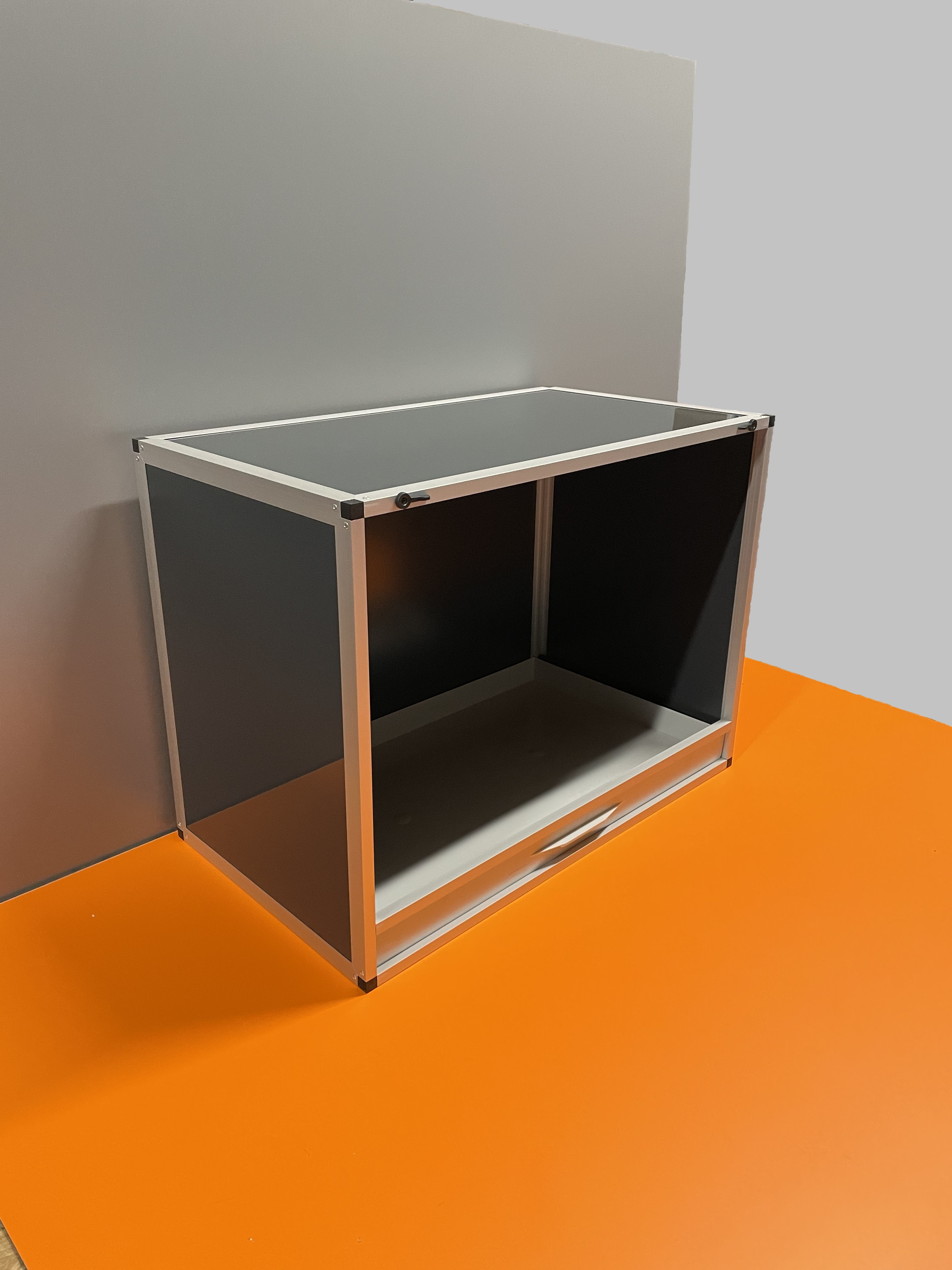 Přední stěnu lze vyjmout. Je to především z důvodu kvalitní údržby celé klece. Stěny této bednové klece jsou z velmi kvalitního materiálu hliníkový sendvič. Do toho materiálu lze řezat, vrtat. Přední stěny nabízíme pouze s italskými pletivy, a to v černé matné barvě, oko 19x19, drát 1,5mm a stříbrné, oko 16x16x1,2 mm. Na přání zákazníka můžeme vyrobit bednovou klec, kde bude strop rovněž potažen pletivem. Pokud si zákazník objedná více než čtyři klece najednou, bude doprava těchto klecí zdarma. Pokud si zákazník přijede osobně bude mu poskytnuta sleva 8 % na čtyři a více klecí v tomto provedení.