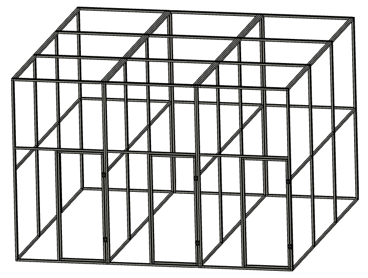 Rozměry voliéry šířka 300 cm, hloubka 303 cm, výška 200 cm. Jedná se o voliéru o třech chovných boxech. Každý box má samostatná dvířka s výškou 120 cm a šířkou 50 cm. Voliéra v nabídce je potažena značkovým pletivem Esafort oko 19x19mm drát 1,45mm. Pletivo je vždy k rámům uchyceno značkovými nýty Bralo. Na žádost zákazníka můžeme pletivo zaměnit za jiné z naší nabídky. Rovněž použití profilů z povrchovou úpravou eloxováním je na vyžádání a je s příplatkem 10% z celkové ceny sestavy. Pokud bude sestava umístěna a uchycena na zeď budovy, není potřeba zadních panelů. Tyto panely budou z celkové ceny odečteny. V ceně není započtená doprava a případná montáž na místě.
