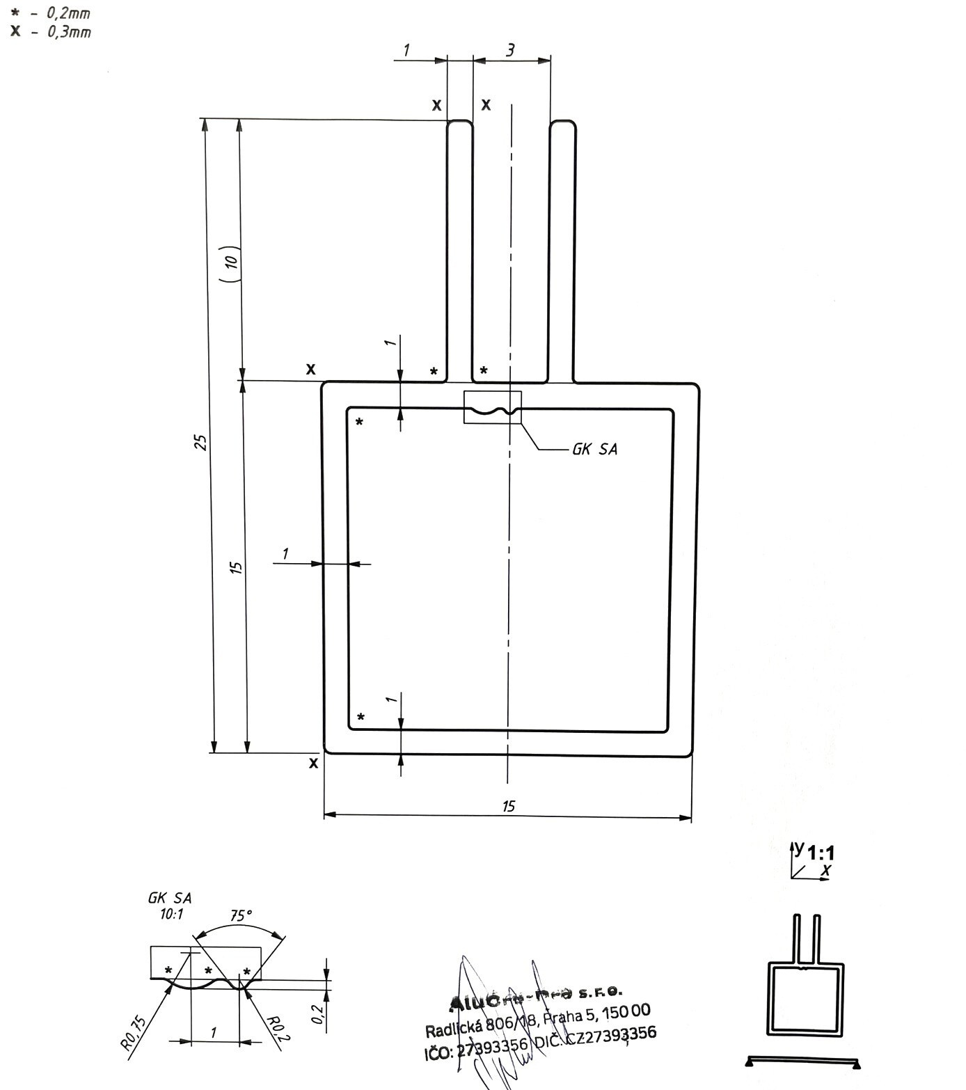 Mezera mezi drážkami je 3 mm.