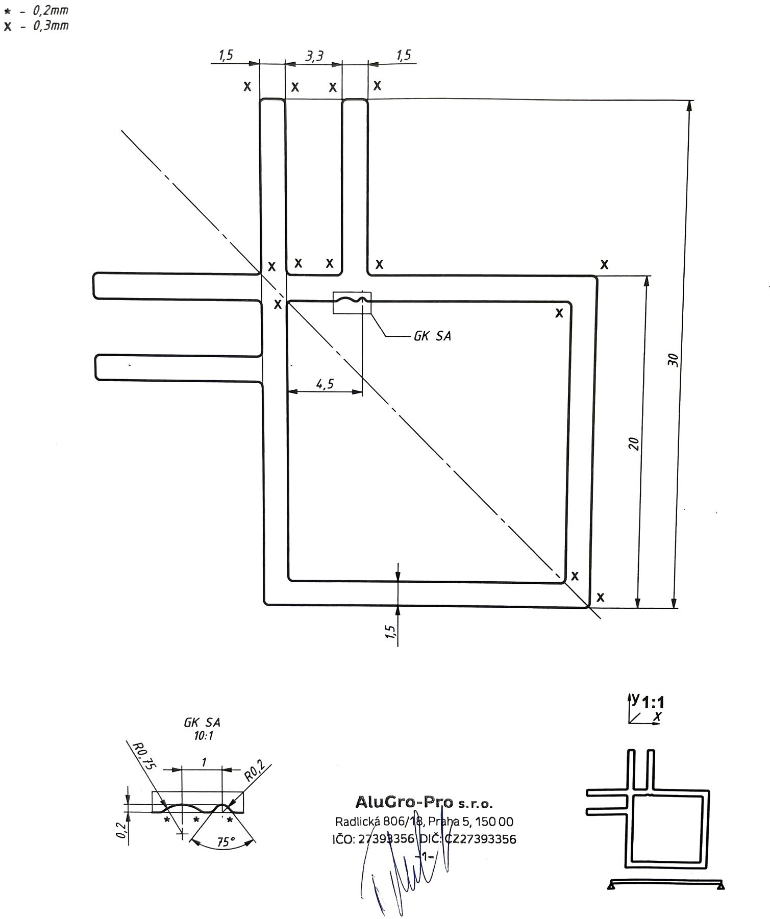 Mezera mezi křidélky je 3mm a délka obou jazýčků je 10mm.