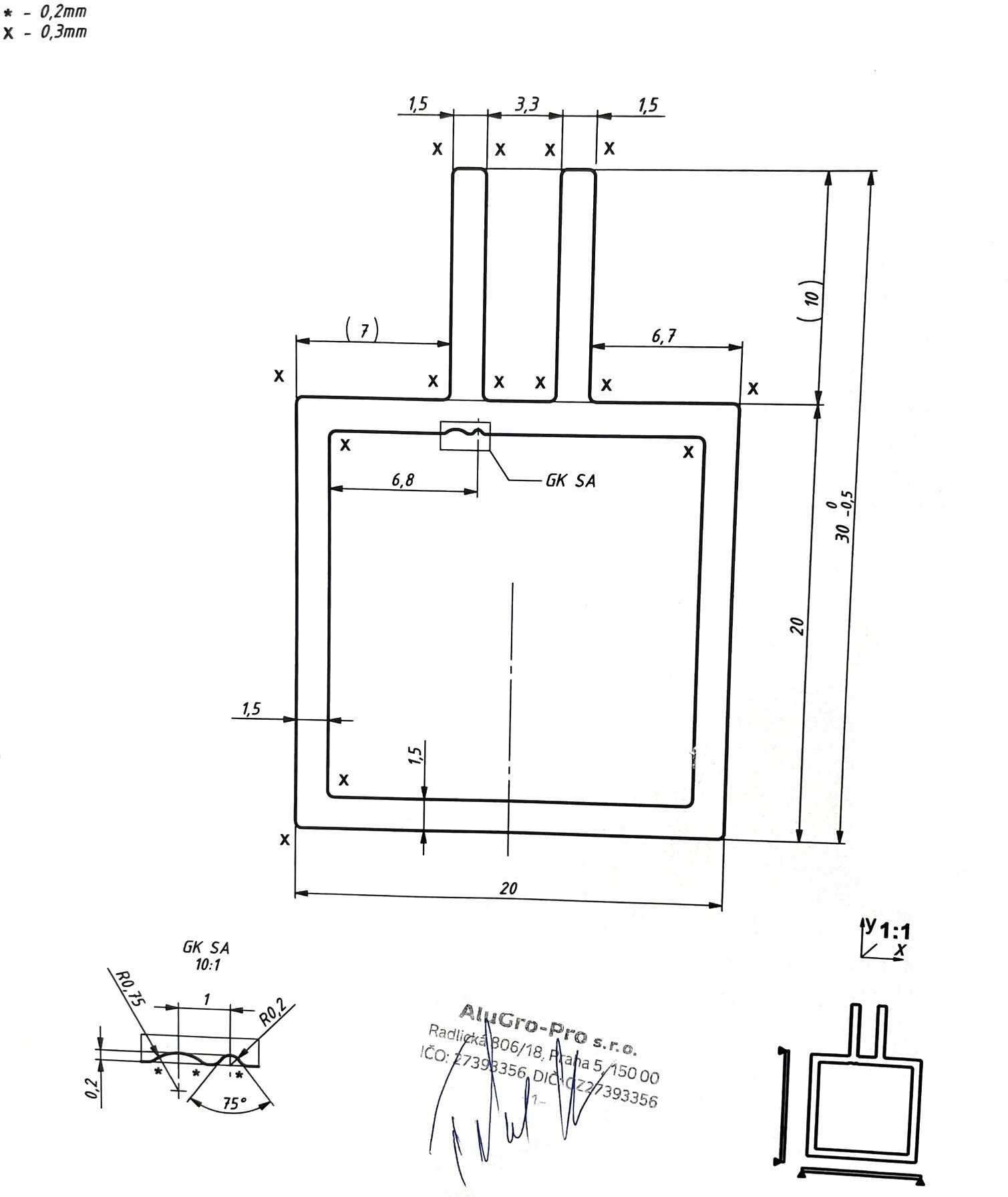 Mezera mezi křidélky je 3mm a délka obou jazýčků je 10mm.
