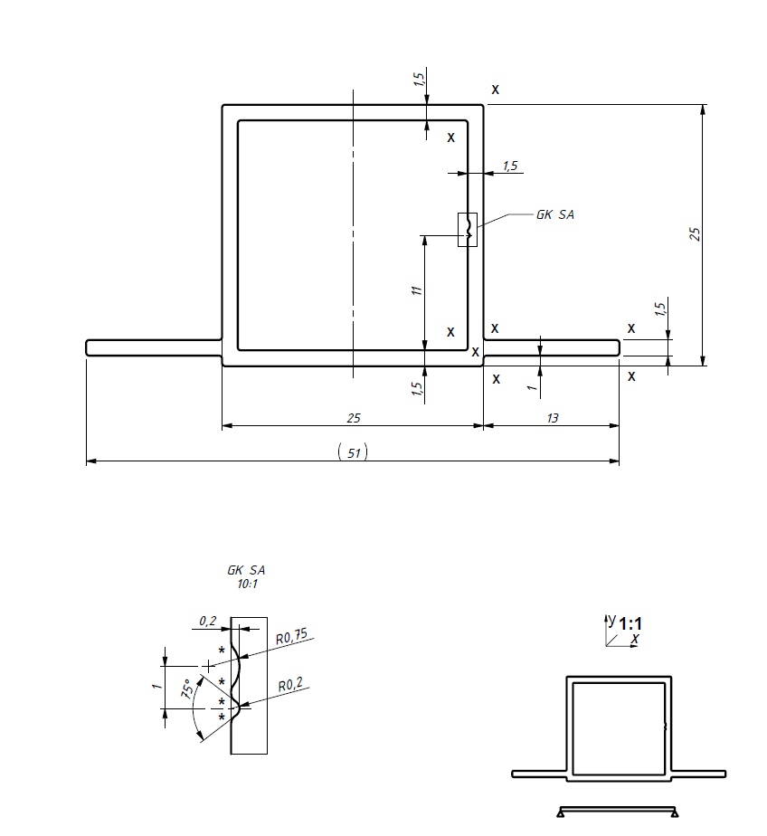 Tento typ profilů je pouze pro spojky 25x25 s kovovým jádrem.