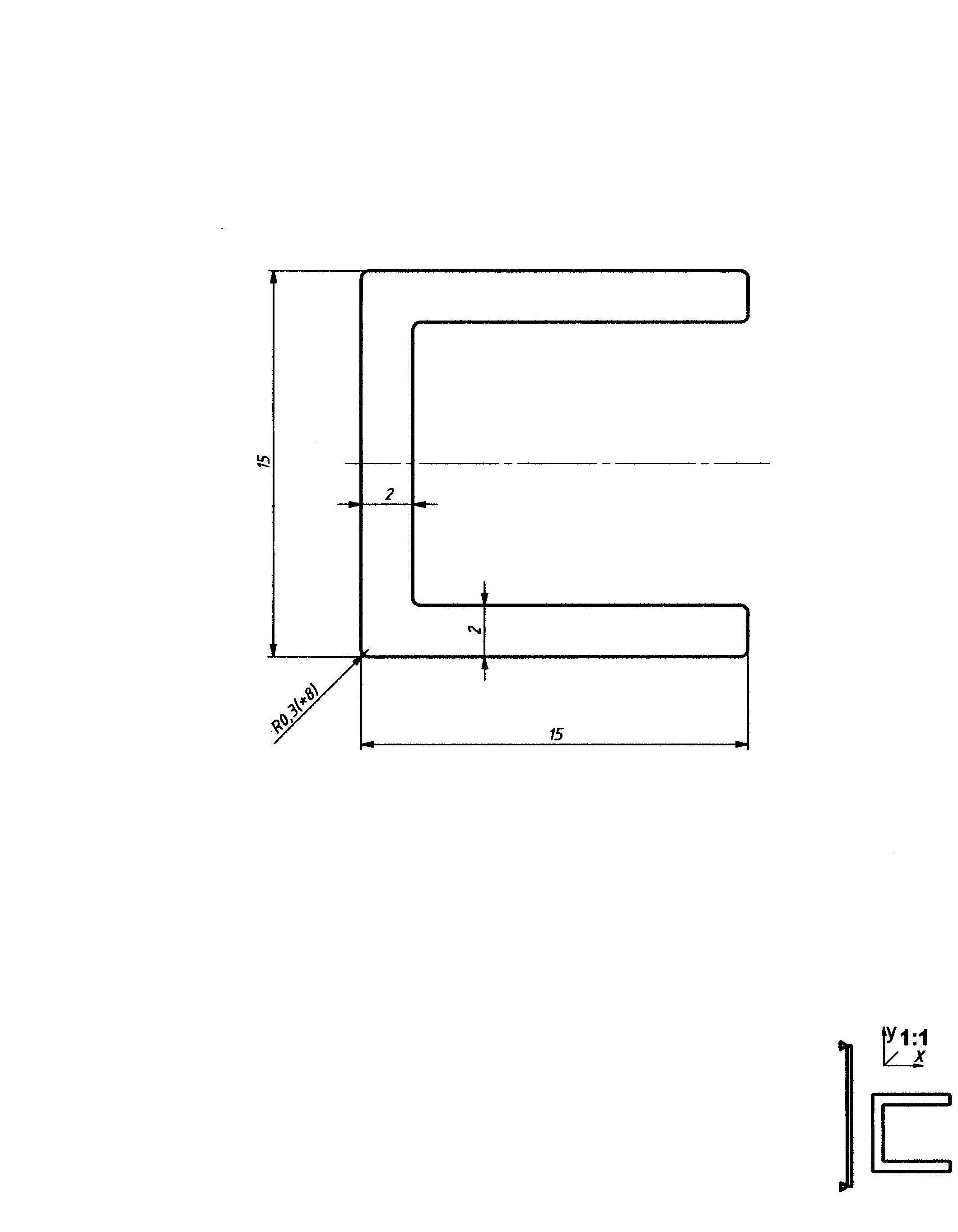 Rozměr profilu je 15 x 15 x 2 mm. Vhodná síla materiálu pro tento profil je 11 mm.
