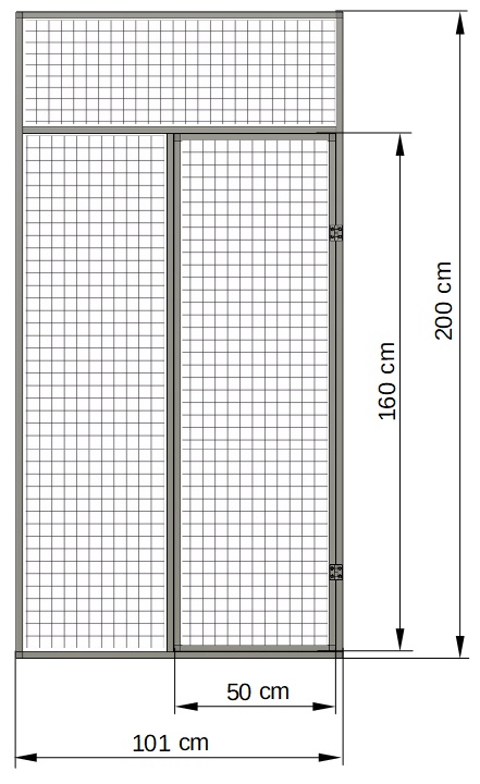 V rámu jsou dvířka o velikosti v 160 x š 50cm. Dvířka rámu jsou zabezpečeny petličkou. Na přání zákazníka lze použit i jiná pletiva z naší nabídky.