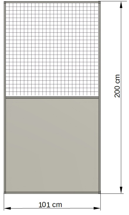 Samostaný hliníkový rám je z 50% potažen pletivem Esafort 19x19x1,45mm. 50% rámu tvoří hliníkový sendvič zasunutý do profilu HJ20V1. Tento hliníkový sendvič může být v barvě bílé, šedé, černé, zelené, zelono-bílé. Pletivo, dle přání lze zaměnit za jiné z naší nabídky pletiv. Pro upřesnění typu barvy , prosím vždy napište do poznámky v objednávce.