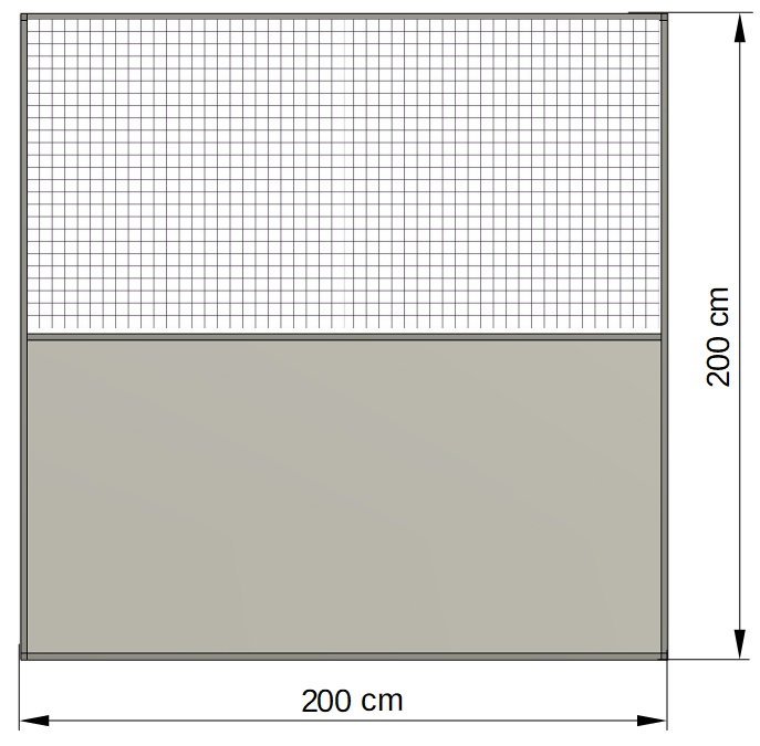 Samostaný hliníkový rám je z 50% potažen pletivem Esafort 19x19x1,45mm. 50% rámu tvoří hliníkový sendvič zasunutý do profilu HJ20V1. Tento hliníkový sendvič může být v barvě bílé, šedé, černé, zelené, zelono-bílé. Pletivo, dle přání lze zaměnit za jiné z naší nabídky pletiv. Pro upřesnění typu barvy , prosím vždy napište do poznámky v objednávce.