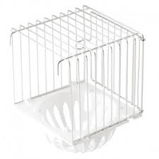 Hnízdo z plastu a s tříškou vybaveno držákem, díky kterému hnízdo jednoduše upevníte na plot klece.