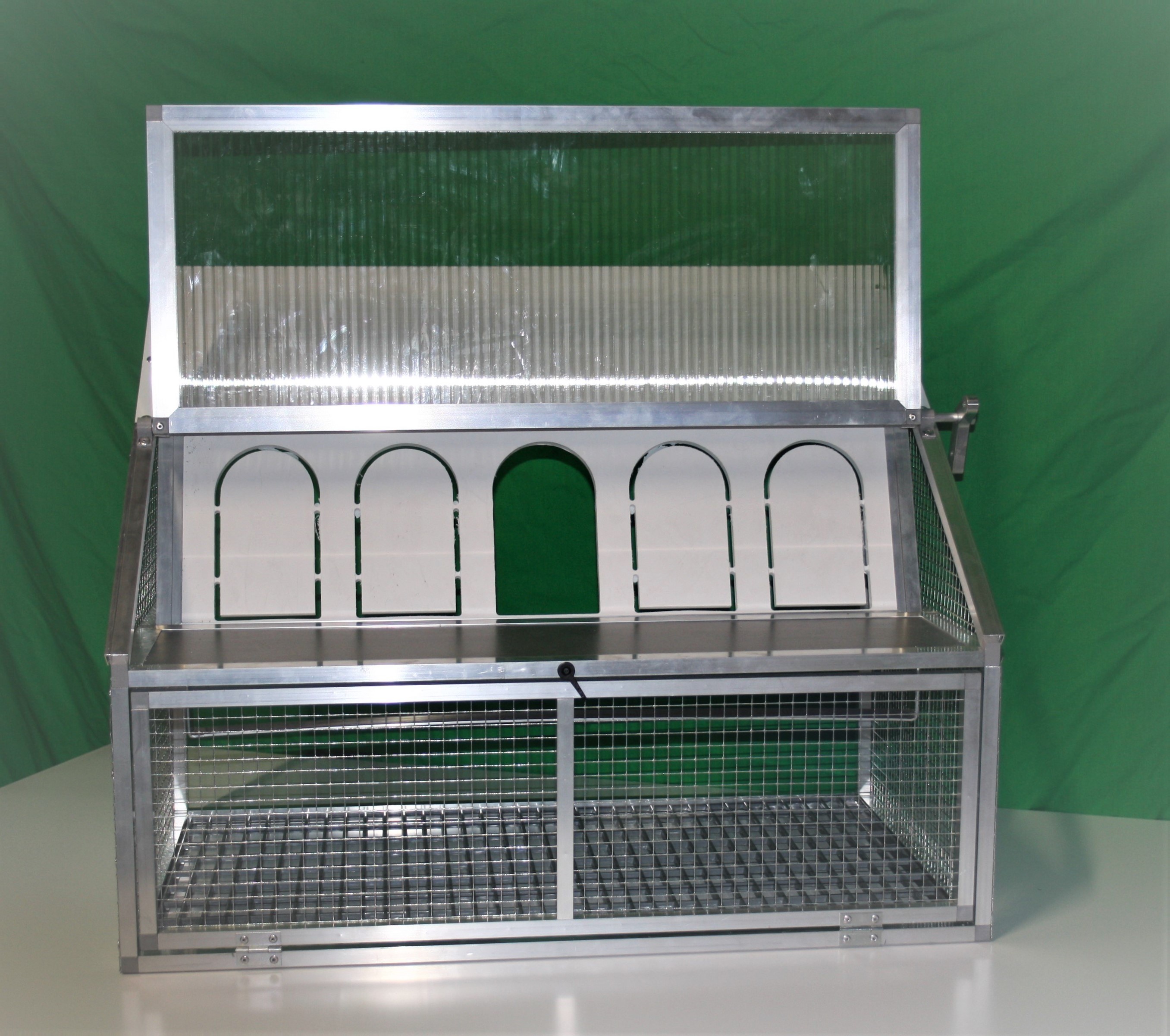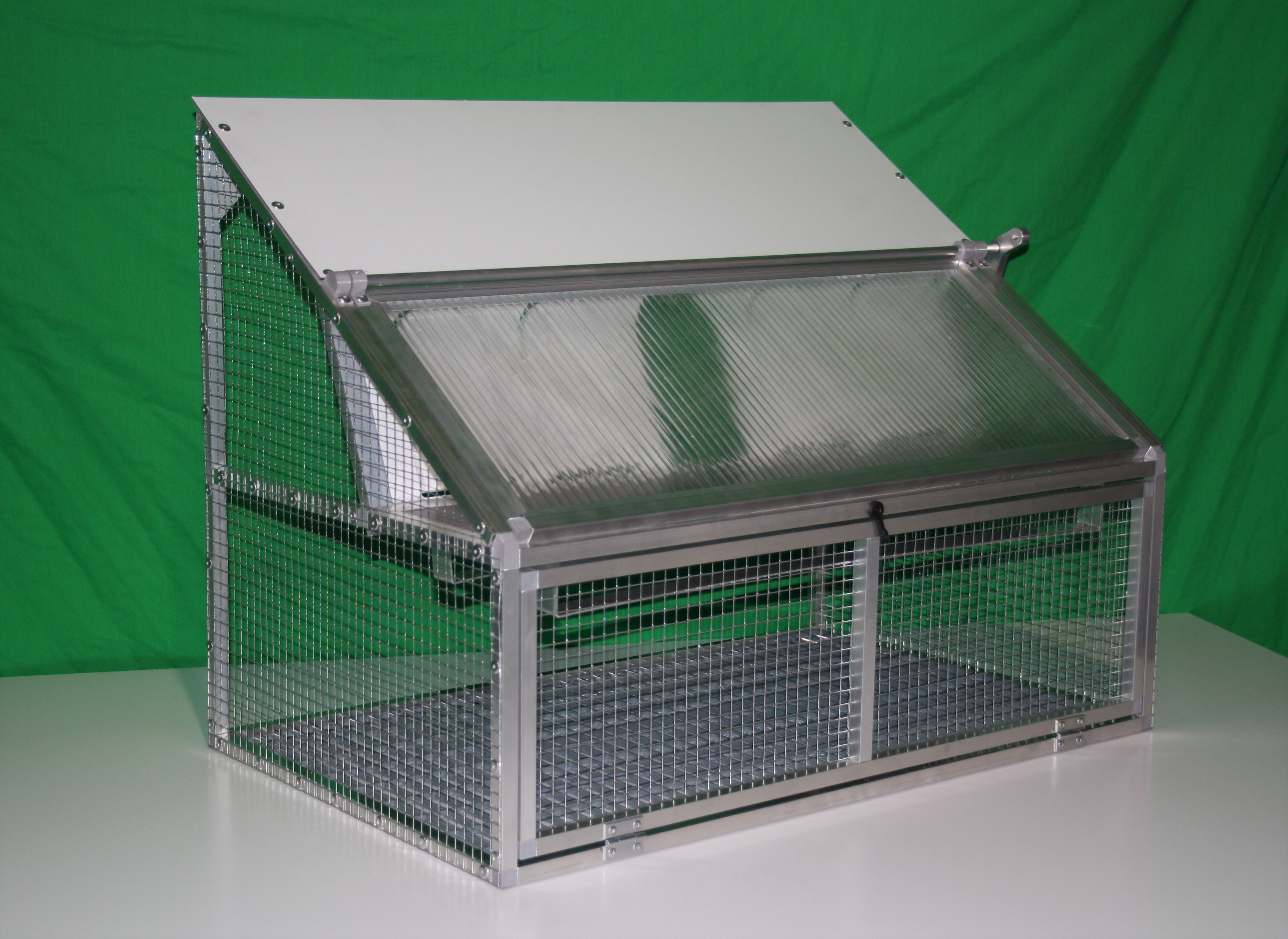 Celohliníková konstrukce. Po bocích tohoto vletu je použito Italské pletivo značky Esafort, oko o velikosti 12,7 x 12,7 mm.