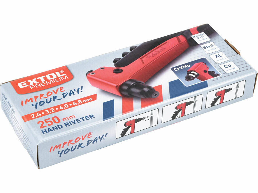 Doporučujeme pro trhací nýty 2,4-3,2-4,0-4,8mm z materiálů Al, měď, ocel, nerezová ocel.