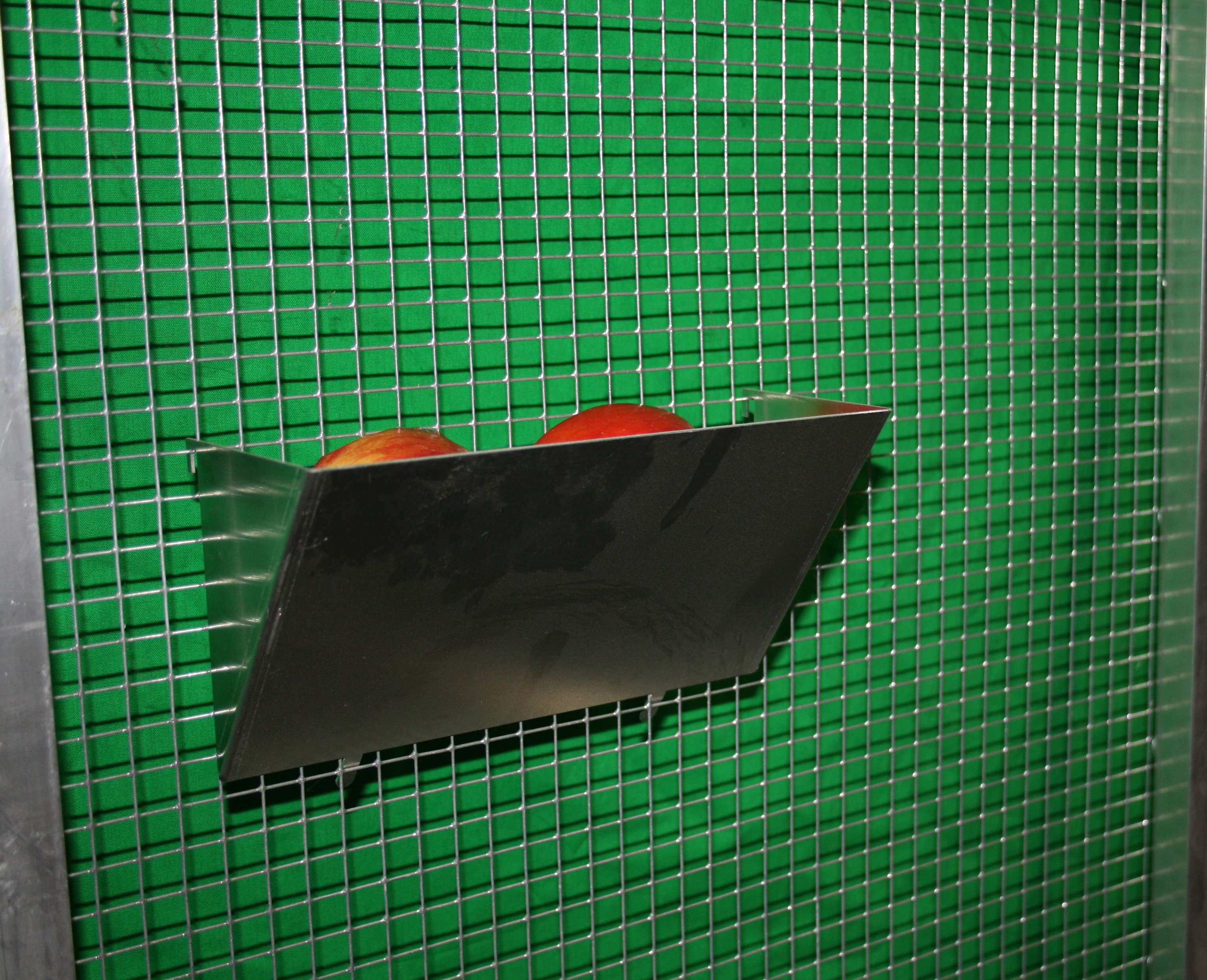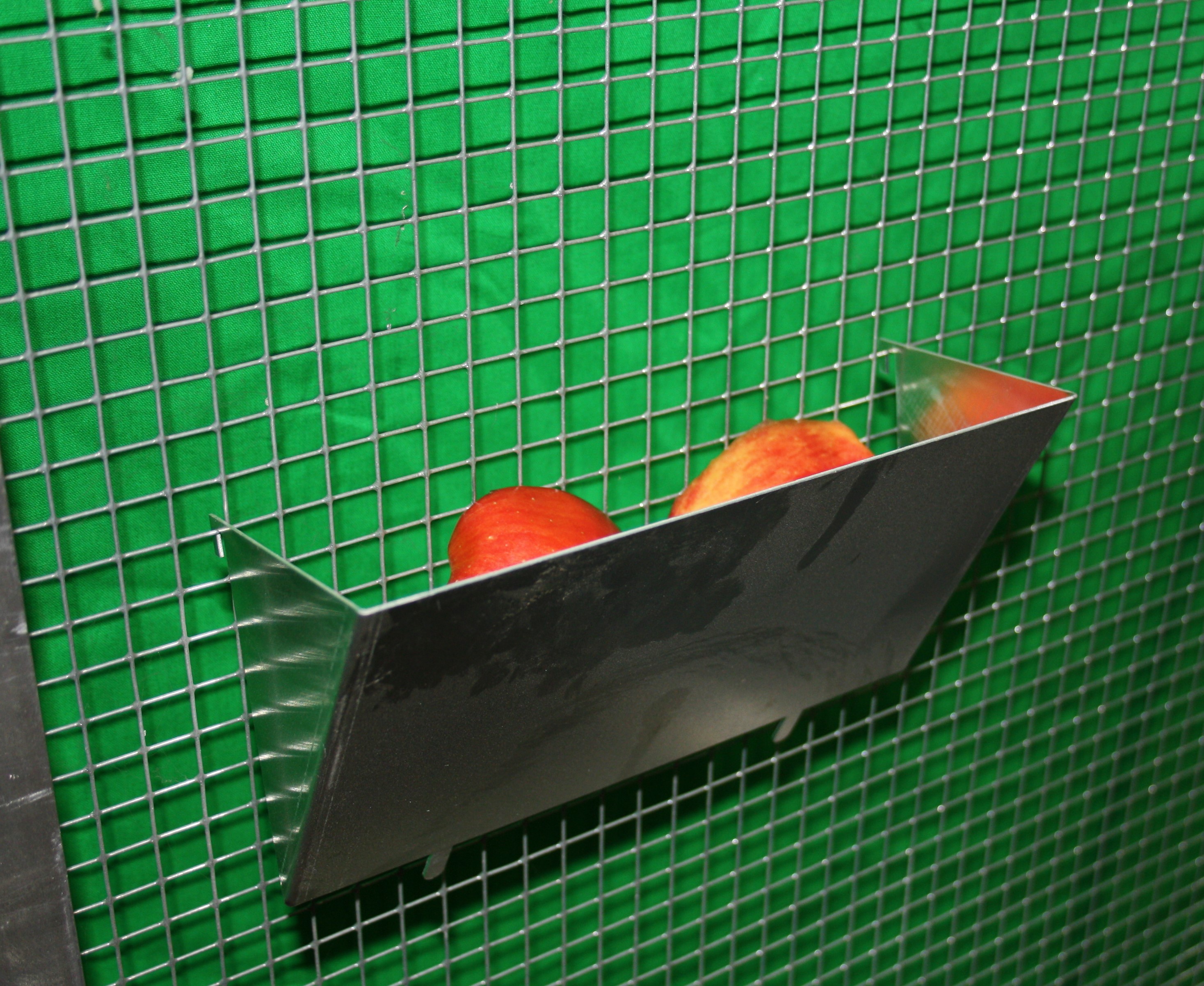 Krmítko na ovoce nabízíme v hliníkovém provedení. Zavěšuje se zvenčí voliéry.