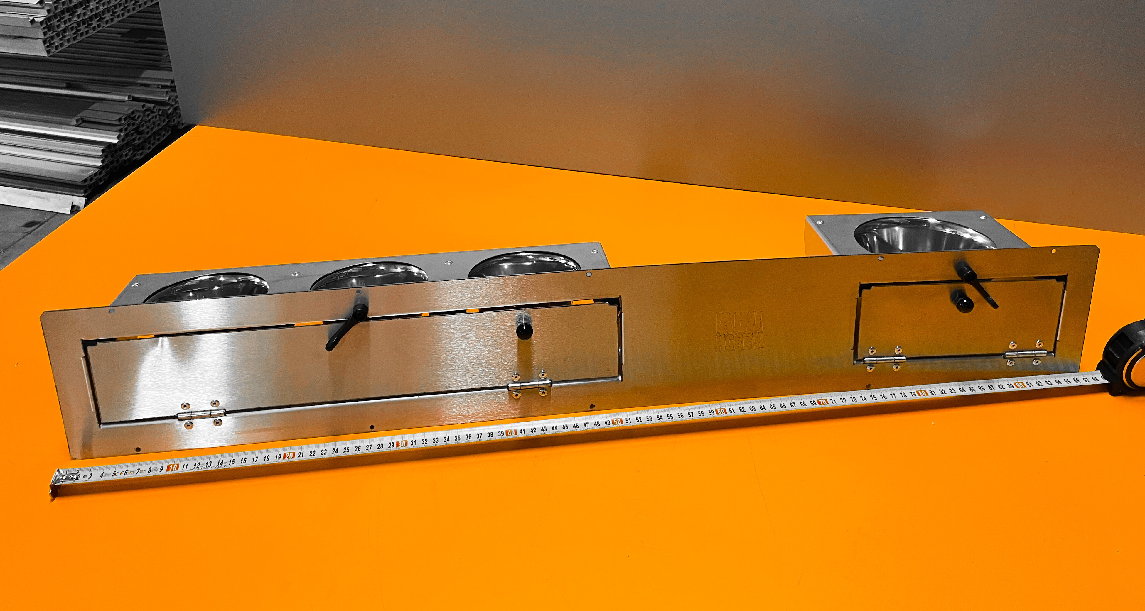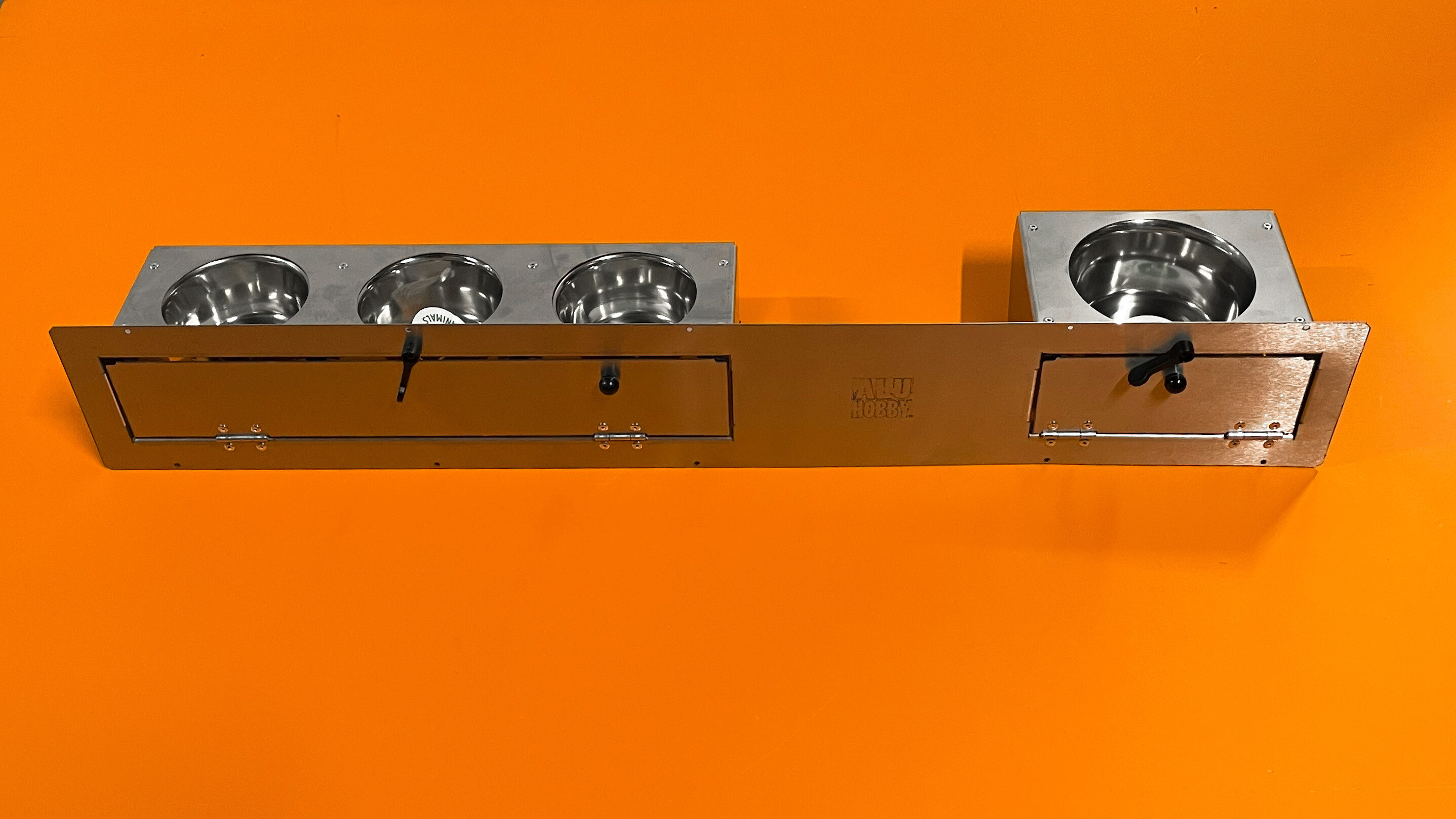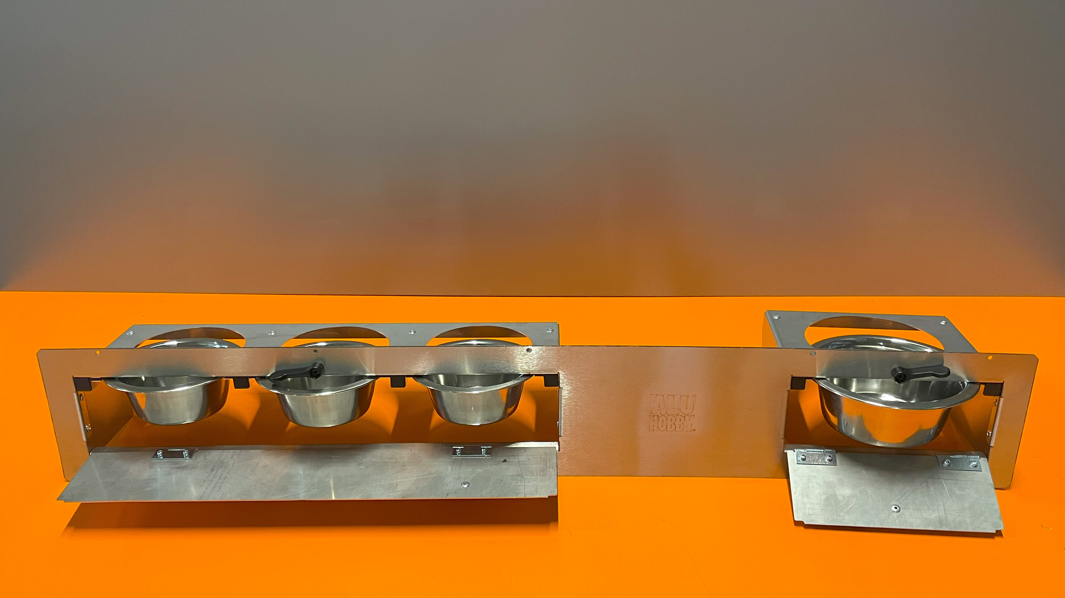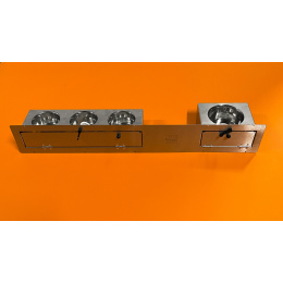 Dvojitý zásuvný celonerezový pult se vyznačuje především v kvalitě použitých materiálů a v provedení. Tento nerezový pult se vkládá do již připraveného otvoru o rozměru 150 x 970 mm. Síla nerezového plechu použitého na základní desku je 1 mm. Krmný pult dodáváme již ve smontovaném stavu. Rámeček je vyroben z nerezového plechu s otvory pro nýt nebo šroub.
