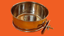 Nerezová miska k přišroubování do klecí pro ptáky. Průměr: 12,6 cm, výška 5,7 cm, objem 630 ml.