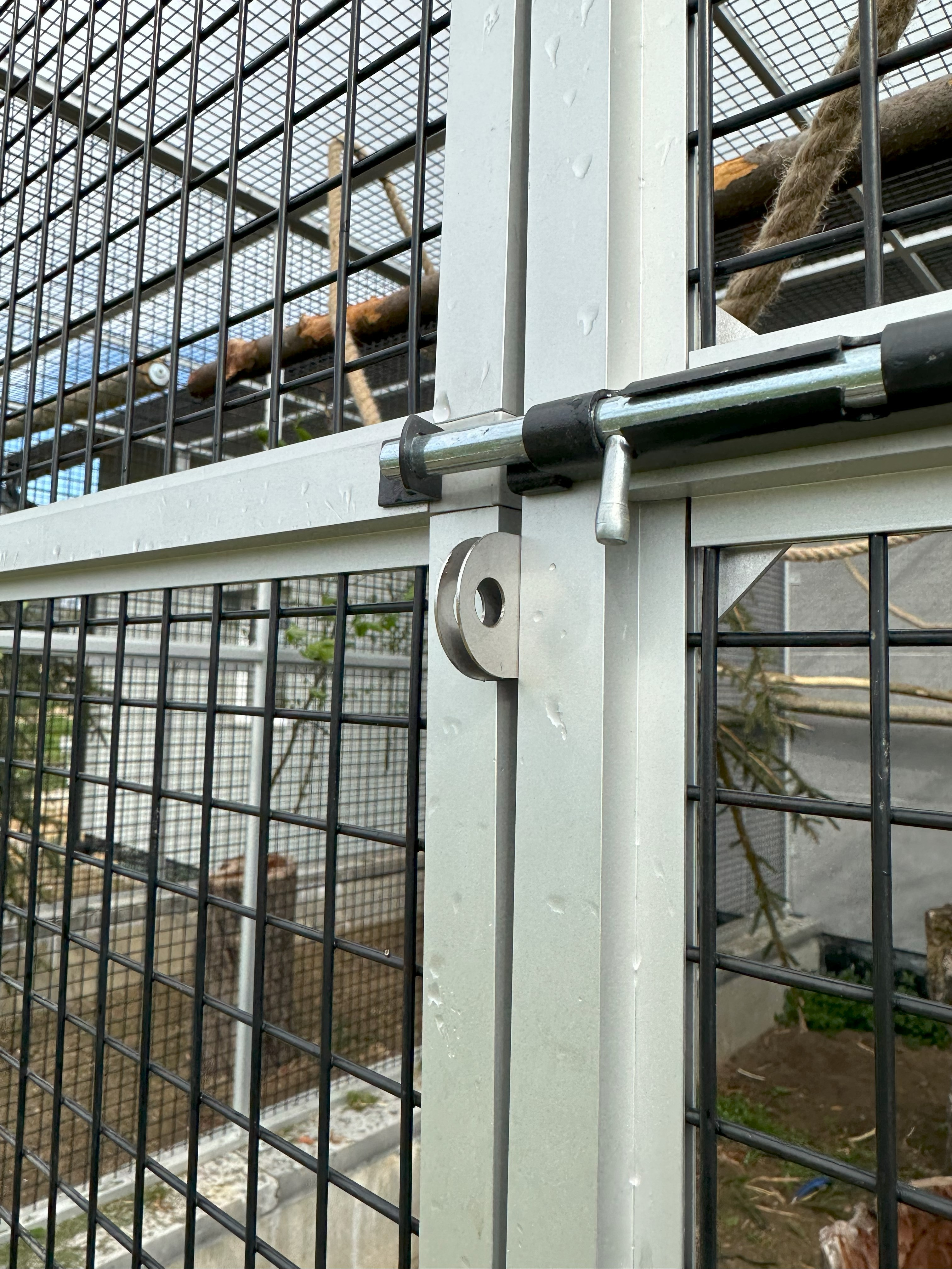 Nerezové zabezpečení voliéry nebo dvířek za pomocí visacího zámku. Použity materiál nerezový plech o síle 1mm. Průměr dírek pro uchycení za pomocí nýtu 4,9mm. Dírka pro visací zámek průměr 10mm. Jeden plíšek se nýtuje na dvířka a druhý na rám. Na jedny dveře potřebujete vždy plíšky dva. Pozor v nabídce jsou po jednom kuse.