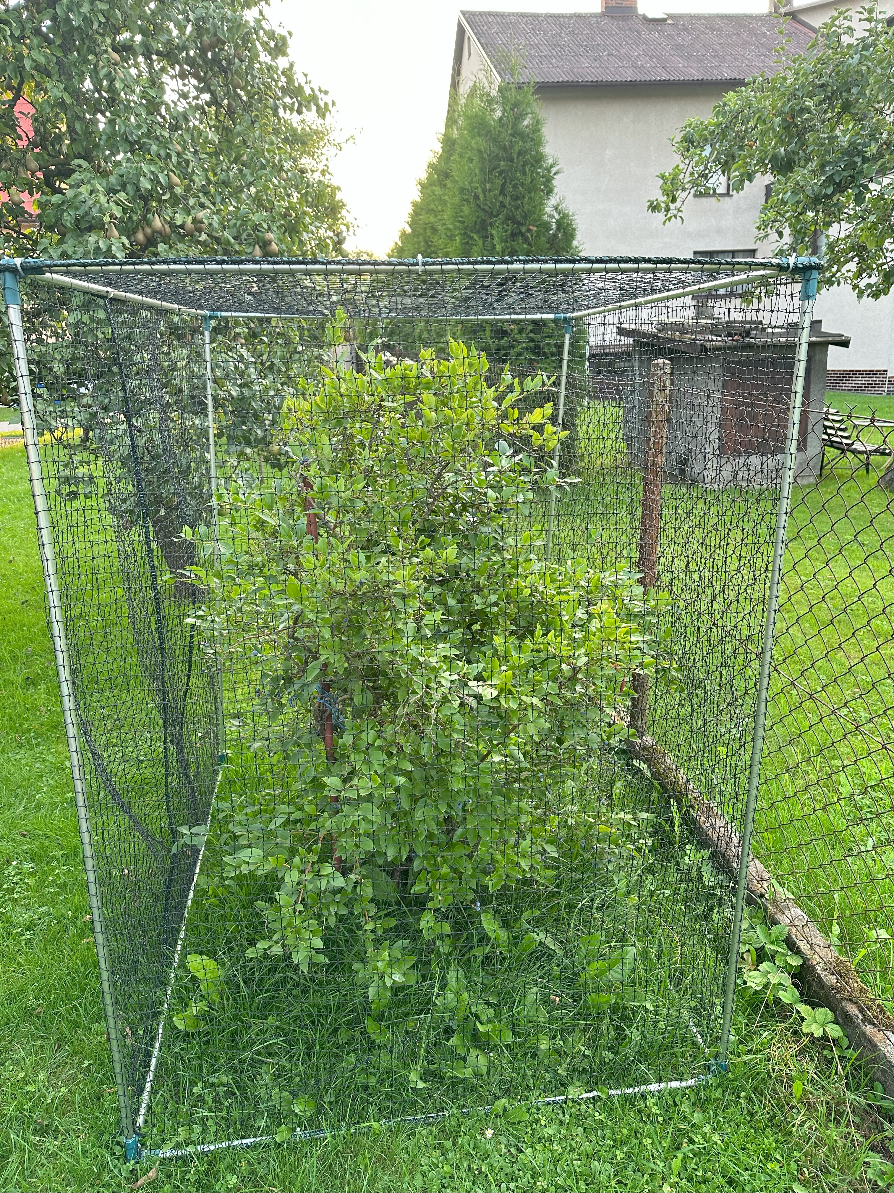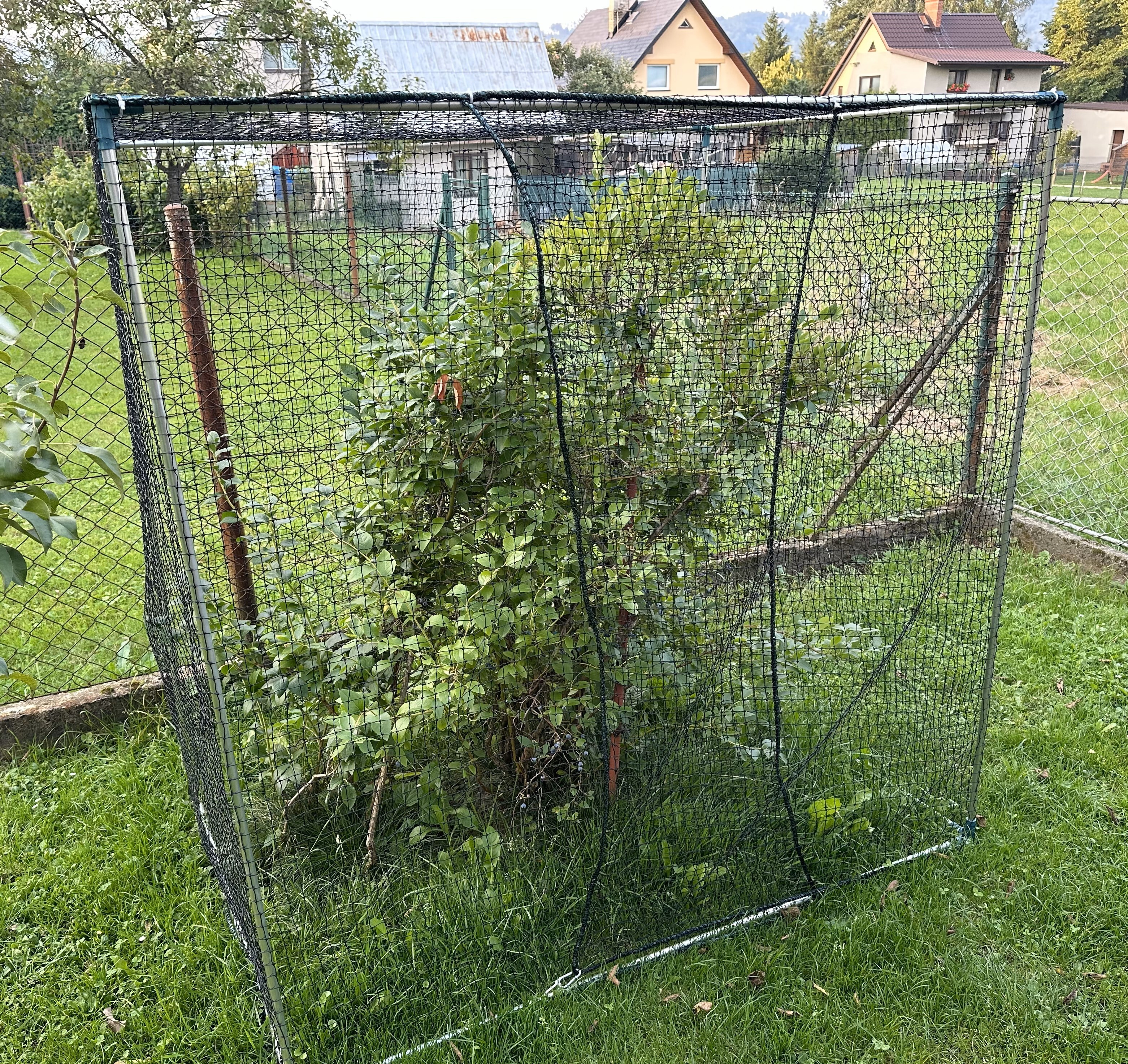 Když borůvky dozrávají je potřeba je nějakým způsobem ochránit, například sítí. Síť je natažená na hliníkovou konstrukci, kterou tvoří tyče o průměru 16 mm. Jsou spojeny pomocí plastových spojek (https://www.aluhobby.cz/plastove-spojky-hlinikove-vyztuze/spojky-pro-tyc-prumer-16mm/).