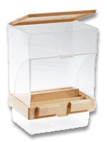 Zewnętrzny karmnik z mocowaniem do wolier lub klatek.