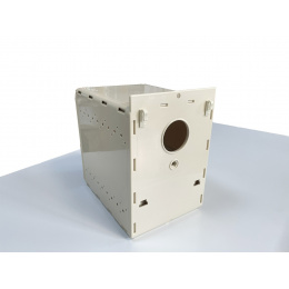 Plastowe gniazdo dla małych papug, łatwe w utrzymaniu. Wewnątrz gniazda znajduje się szuflada, w której jest plastikowe gniazdo do wylęgu jaj. To gniazdo ma przedni wlot. Kolor beżowy, nietoksyczny materiał.