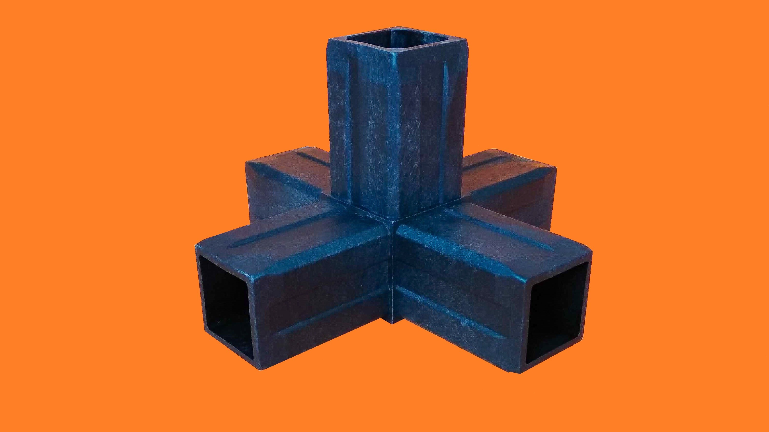 Dużą zaletą jest to, że nie ma potrzeby trudnego spawania profili aluminiowych. Połączenie profili aluminiowych charakteryzuje się wysoką wytrzymałością i zwartym wyglądem.Ten typ złącza jest przeznaczony do profili 40x40x2mm.