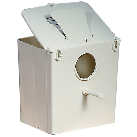 Zewnętrzne plastikowe gniazdo dla małych ptaków, z górną pokrywą.