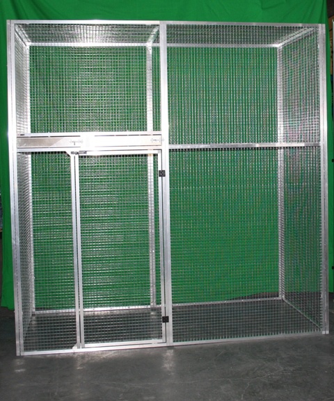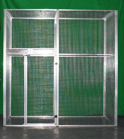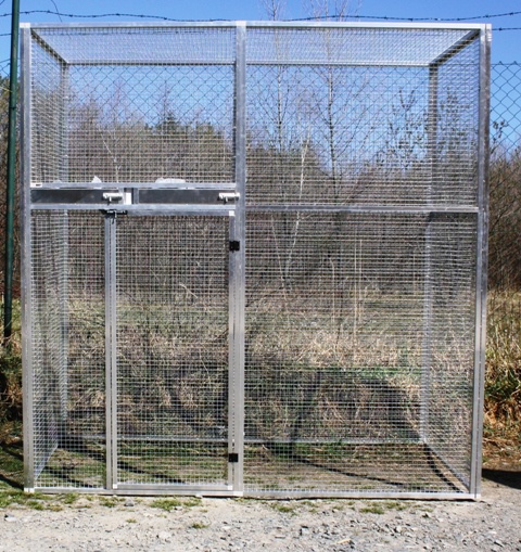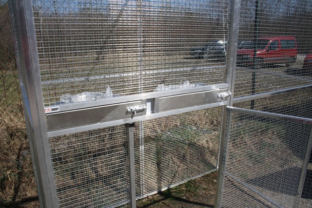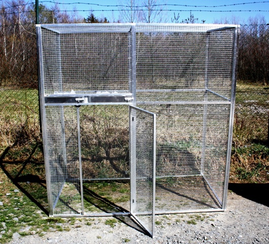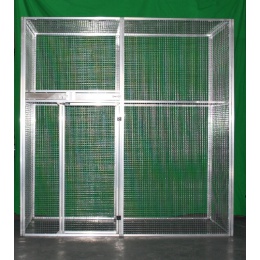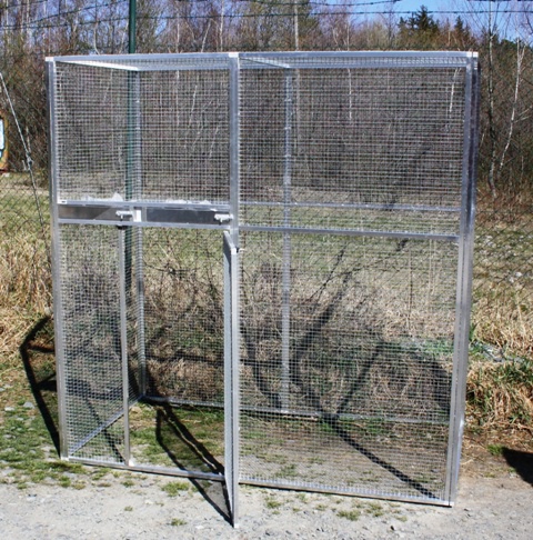 Jest pokrytasiatką Esafort 19x19x1,45 mm. Na życzenie klienta można siatkę wymienić na inną z naszej oferty.Siatka w całej wolierze jest rozciągnięta od wewnątrz wolierze, i to z powodów estetycznych. Cała woliera jest skręcona śrubami M6. Do ramy są nitowanegwinty nierdzewne.Woliera jest wyposażona w dwa niezależne obrotowe stoły do karmienia. Jeden karmnik przeznaczony na wodę wyposażony w miskę o pojemności 0,75l. Drugi karmnik jest wyposażony w dwie miski o pojemności 0,35l.Wolierę wysyłamy transportem paletowym za pośrednictwem umownego przewoźnika Toptrans lub PPL.Woliera jest bardzo szybka i łatwa do złożenia i ponownego rozłożenia. Po uzgodnieniu można zamiast siatki do niektórych ram włożyć wypełnienie z aluminiowego kompozytu, twardego PVC lub pleksiglasu.