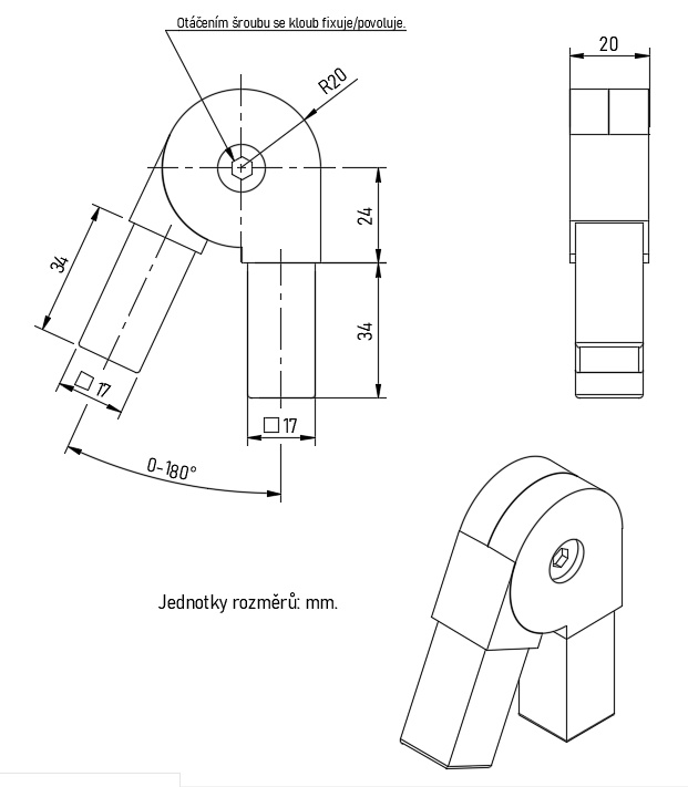 Tento typ spojky je pro profily 20x20x1,5mm.