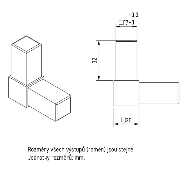 Tento typ spojky je vhodný pro hliníkové profily 20x20x1,5 mm.