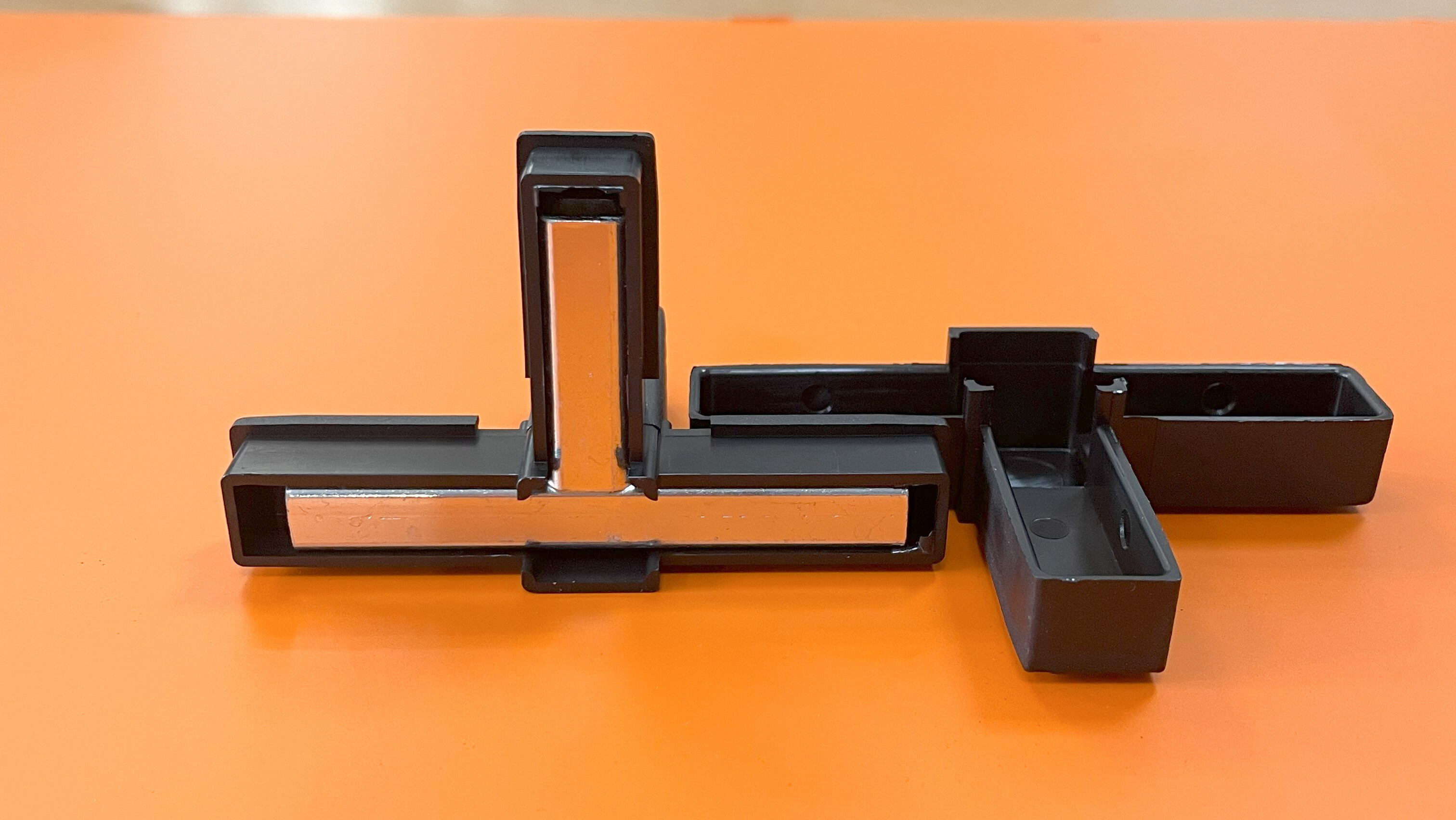 Plastové spojky s kovovým jádrem jsou výborným řešením pro spojování hliníkových profilů, kde se požaduje vysoká stabilita konstrukce.
