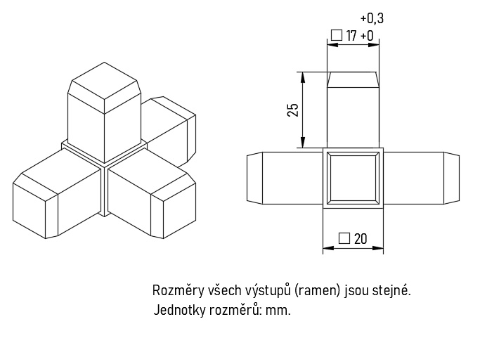 Plastové spojky NOWA jsou skvělým řešením pro spojování hliníkových profilů. Velkou výhodou je, že každý výstup na spojce má vlastní náběh. Osahují UV filtry a jsou houževnatější nežli klasické spojky. Tento typ spojky je pro profily 20x20x1,5mm, který naleznete u nás v nabídce "Hliníkové profily 20x20x1,5mm".