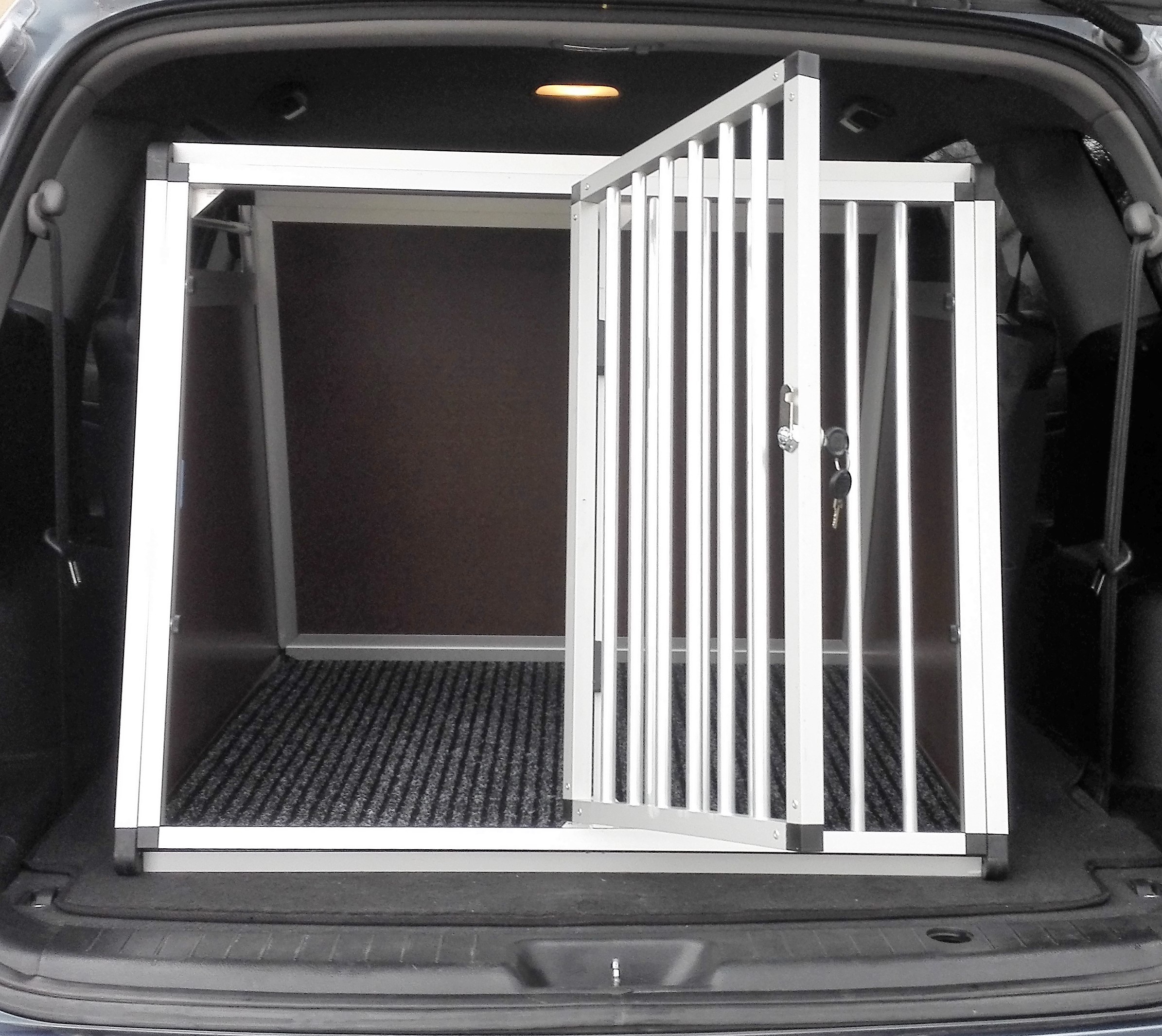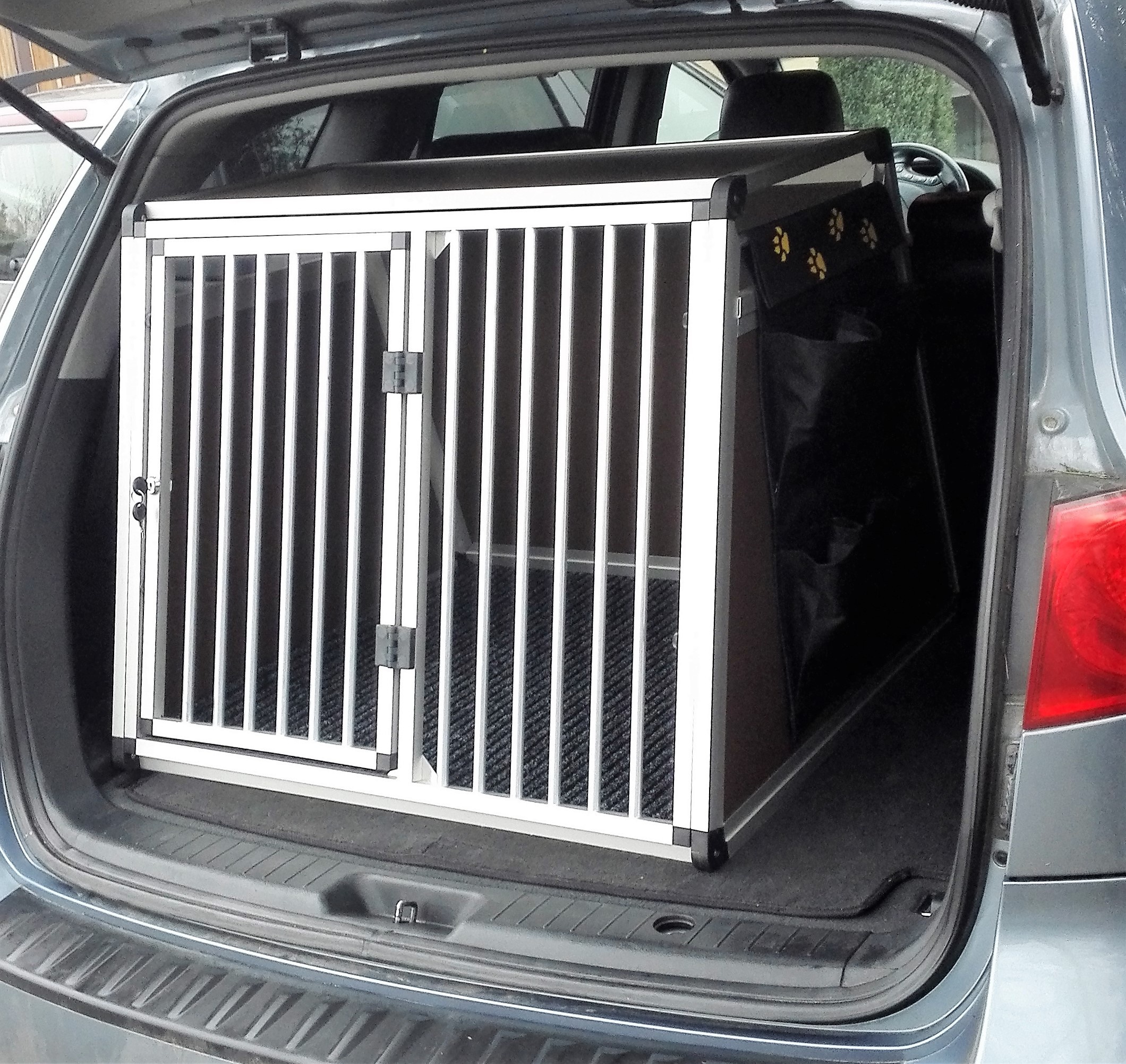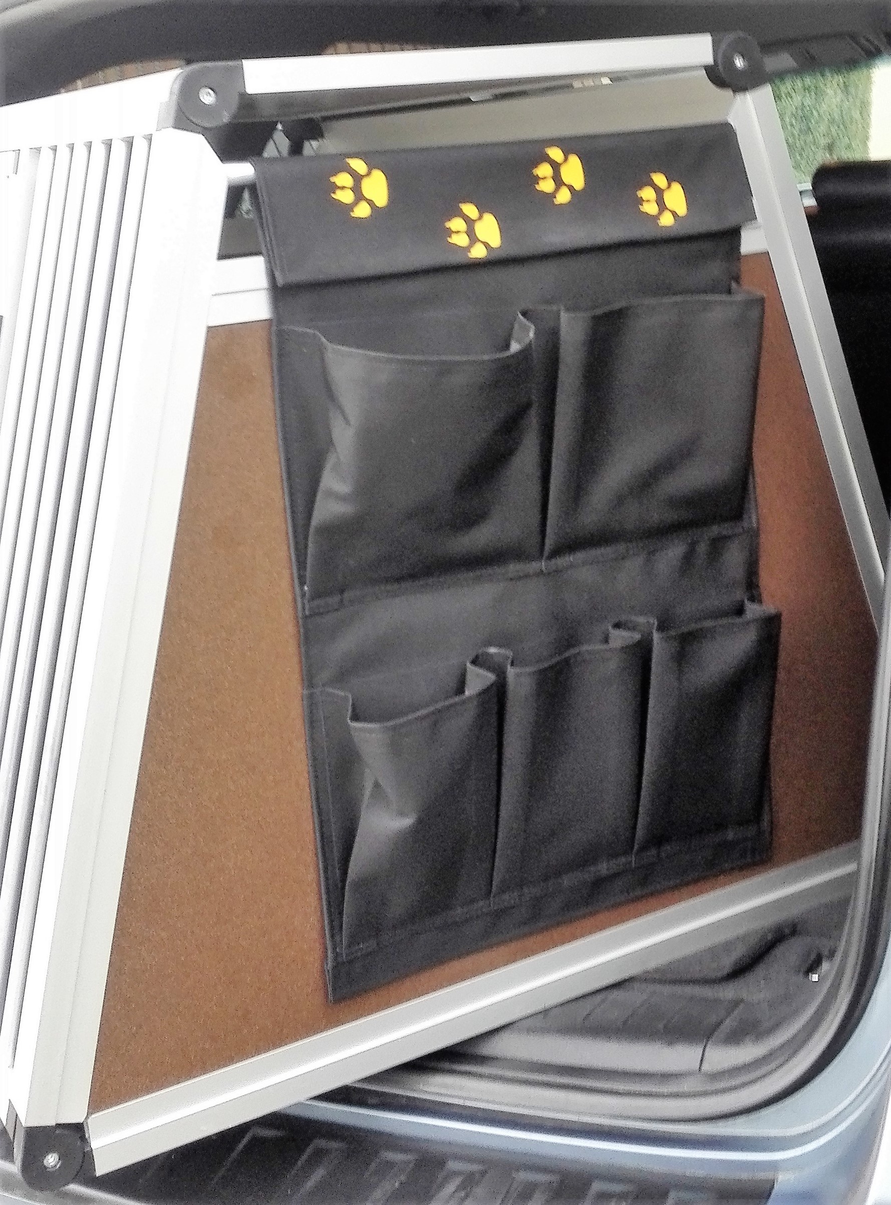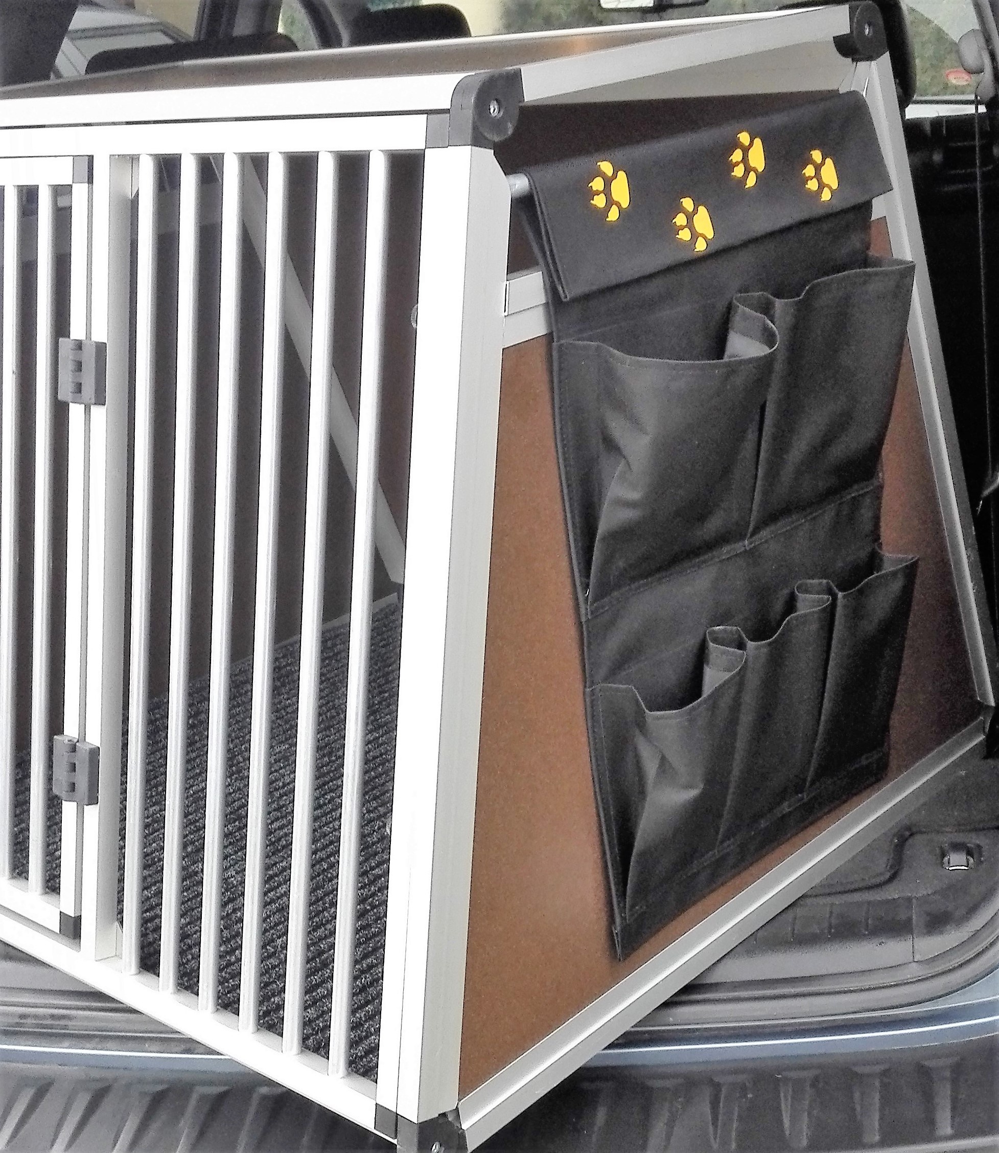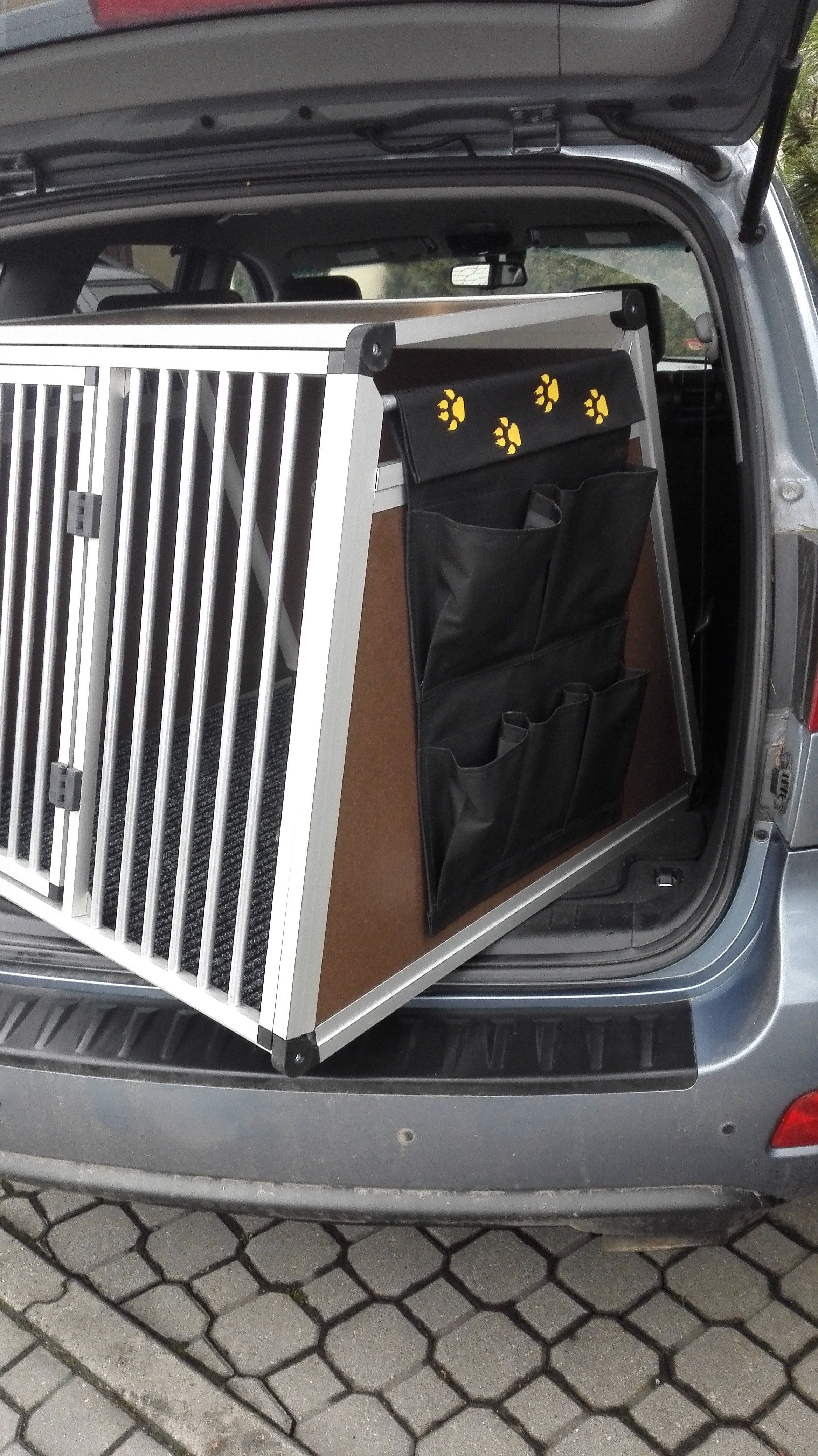 V podstatě není nutné tyto přepravní boxy z kufru auta vytahovat. Stačí jen vyjmout přední mříž, která je upevněna na 4 úchytech a boxy slouží jako praktický úschovný prostor.