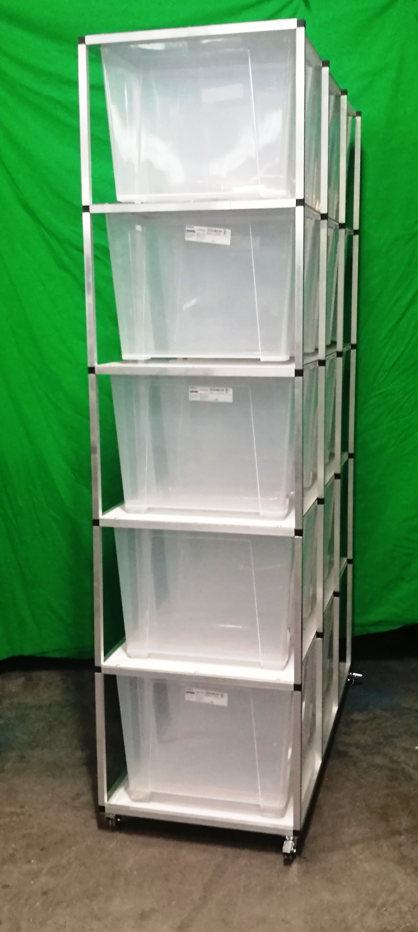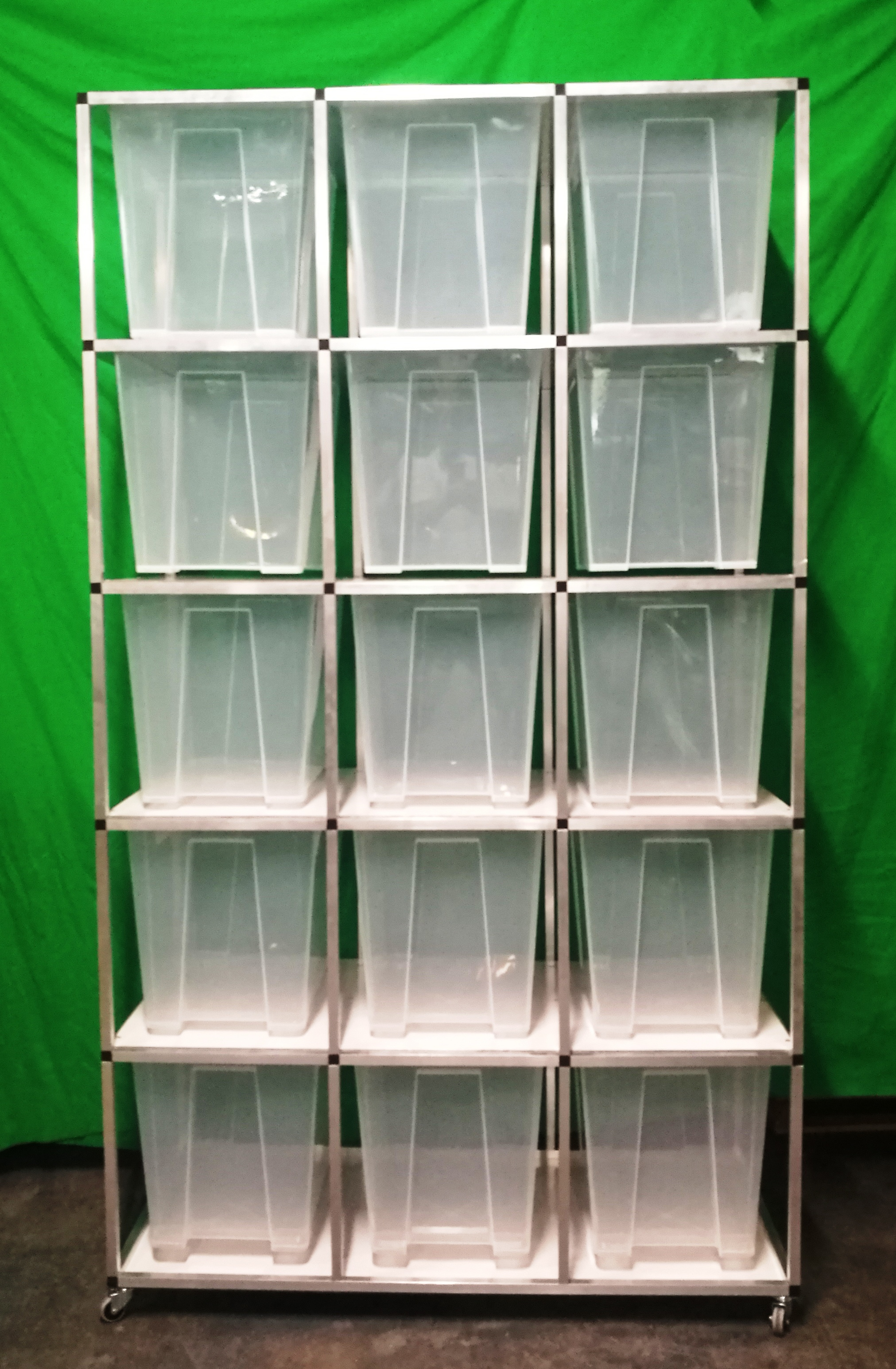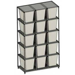 Tento chovatelský Rack systém je často využíván ke komerčním i k hobby chovům. Chovatelé tento Rack systém používají k chovu krajty zelené ale i k chovu hmyzu. Regál je určeny pro plastové boxy o rozměru š 39, h 56, v 42 cm. Tyto boxy se taky nazývají Samla boxy. Pokud si zákazník boxy v prodejnách Ikea zajistí sám, je potřeba na těchto boxů udělat malou úpravu, a to odříznout po stranách malé výstupky tak, aby šly boxy do regálu lehce zasunout. Přepážky mezi patry jsou tvořeny deskami z tzv. hliníkového sendviče. Tato deska je velmi vhodná pro svoji pevnost, a přitom je váhově velmi příznivá. Kolečka s gumovou pryží a brzdou umožňují velmi jednoduchý a lehký pohyb s celým regálem. Kolečka mohou být nahrazena hliníkovými nožkami. Na přání zákazníka umíme Rack vyrobit na počet boxů jak do výšky, tak do šířky podle požadavků chovatele. Rovněž lze Rack zhotovit z profilů s eloxovaným povrchem, a to v barvě stříbrné a černé. Do každého patra lze vkládat topné fólie pod chovné boxy. Boxy jsou součástí Racku.