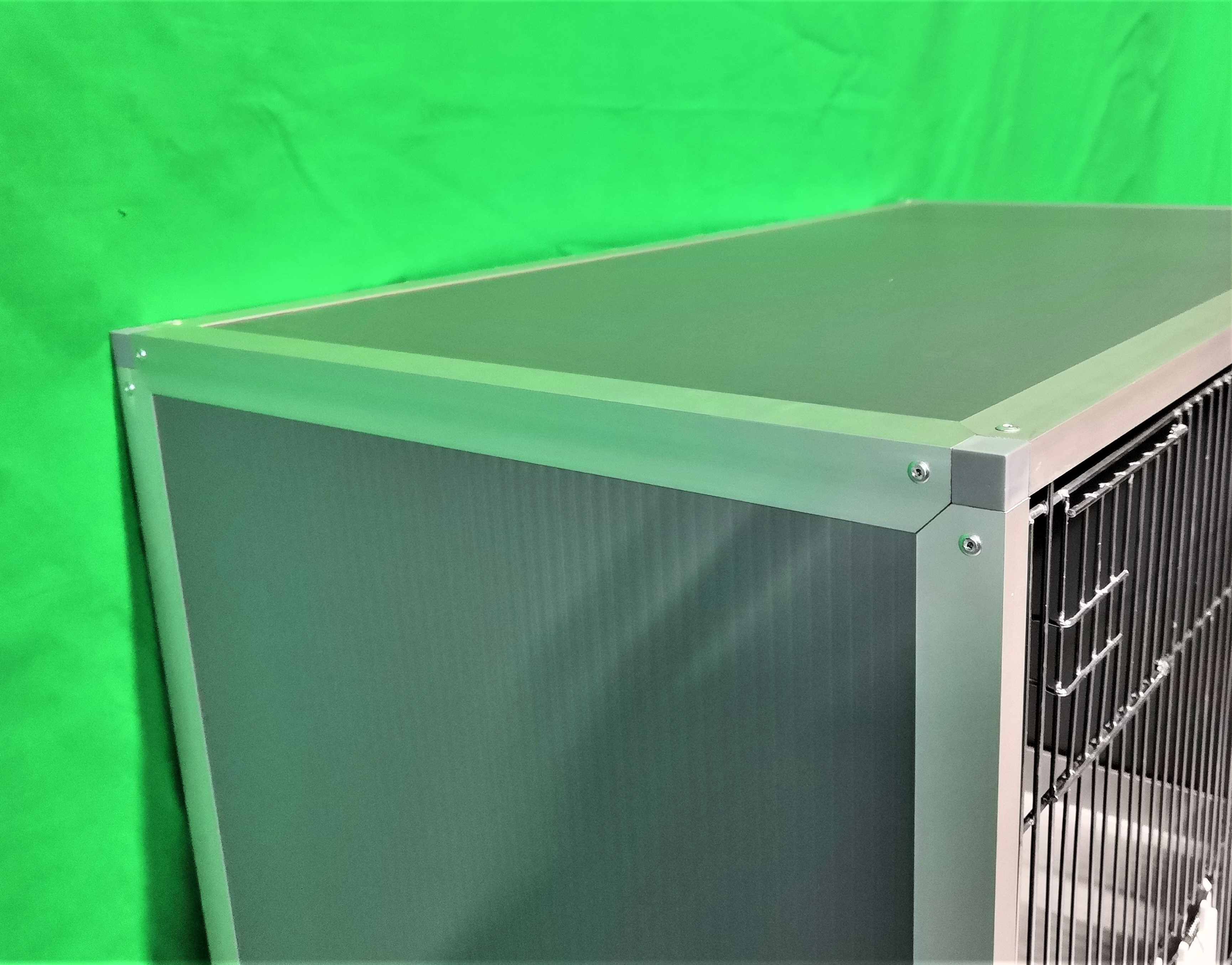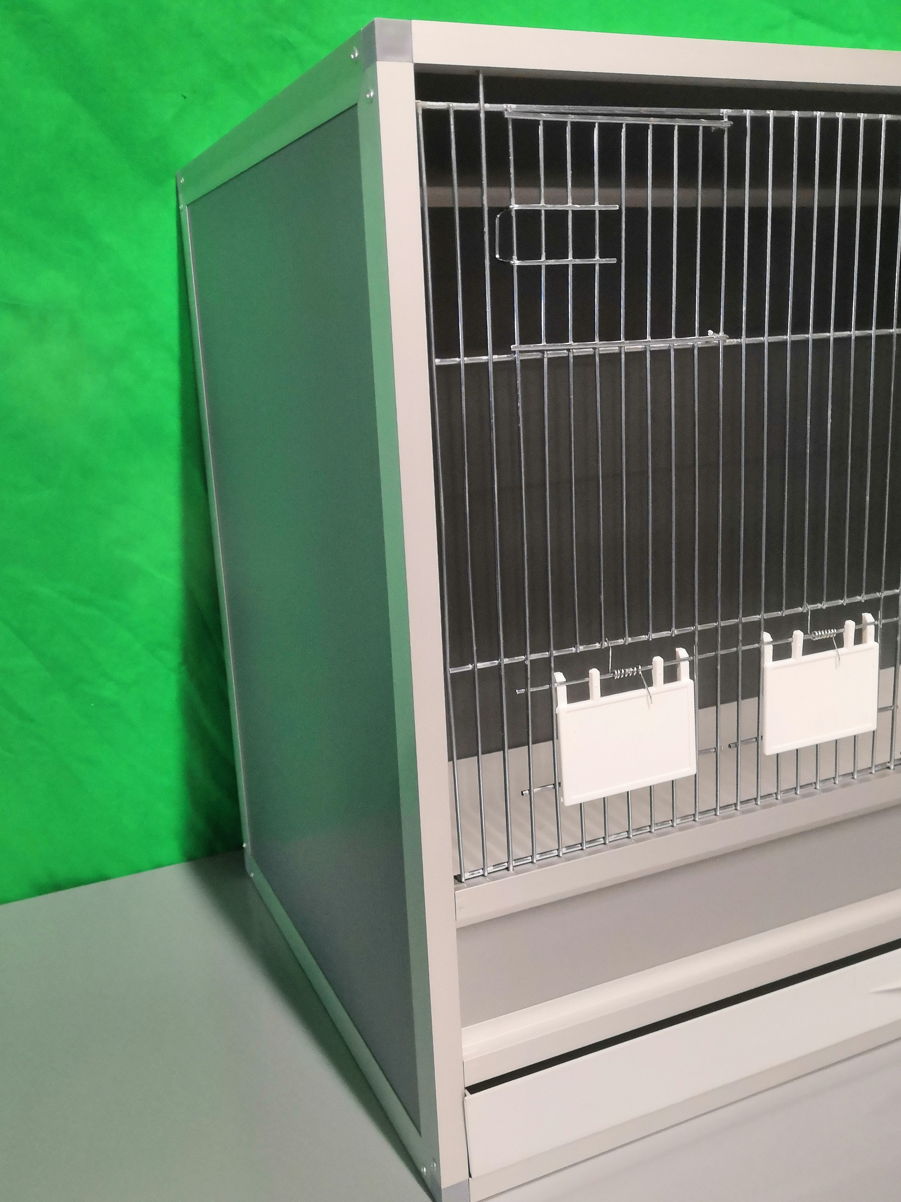 Hliníková konštrukcia s povrchovou úpravou strieborný elox. Desaťmilimetrová výplň môže byť v farbe bielej, šedej a čiernej. Ak zákazník požaduje strop potiahnuť pletivom, je to možné. Predná stena je tvorená vyberateľnou mriežkou so štyrmi kŕmidlami. Súčasťou klietky nie je napájačka. Doplnky je možné doobjednať https://www.aluhobby.sk/ptactvo/doplnky-pre-bednove-klietky/. Veľkou prednosťou tejto debnovej klietky je predovšetkým nízka váha 6kg a vysoká pevnosť. Vďaka nízkej váhe, použitým materiálom sa veľmi ľahko udržiava v chove hygiena.Veríme, že tieto klietky budú slúžiť generáciám.