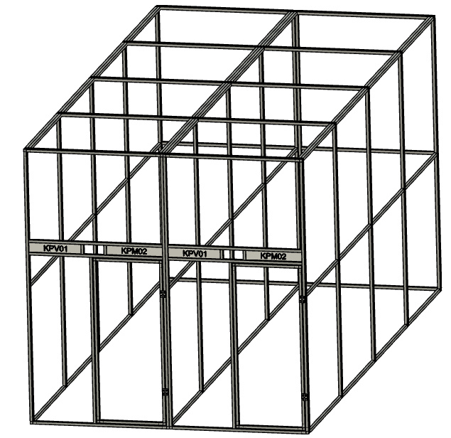 Jedná sa o voliéru o dvoch chovných boxoch. Každý box je vybavený dvoma otočnými kŕmnymi pultmi. Prvý kŕmny pult je s jednou miskou o obsahu 0,75l a je určený pre vodu. Druhý kŕmny pult má dve misky s obsahom 2 x 0,35l určené pre krmivo. Použitie dvoch kŕmnych pultov v každom boxe čiastočne zabráni znečisťovaniu vody krmivom. Krmné pulty sú z 2 mm hliníkového plechu čo činí pult pevným a takmer bezúdržbovým. Voliéra v ponuke je potiahnutá značkovým pletivom Esafort oko 19x19mm drôt 1,45mm. Pletivo je vždy k rámom uchytené značkovými nitmi Bralo. Na žiadosť zákazníka môžeme pletivo zameniť za iné z našej ponuky. Rovnako použitie profilov s povrchovou úpravou eloxovaním je na vyžiadanie a je s príplatkom 10% z celkovej ceny. Ak bude zostava umiestnená a uchytená na stenu budovy, nie je potrebné zadných panelov. Tieto panely budú z celkovej ceny odpočítané. V cene nie je započítaná doprava a prípadná montáž na mieste.