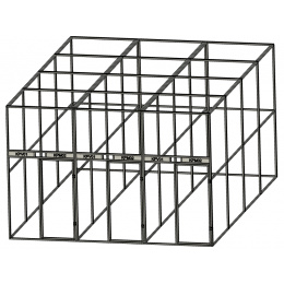Jedná sa o voliéru s tromi chovnými boxami. Každý box je vybavený dvoma otočnými kŕmnymi pultmi. Prvý kŕmny pult je s jednou miskou o obsahu 0,75l a je určený pre vodu. Druhý kŕmny pult má dve misky s obsahom 2 x 0,35l určené pre krmivo. Použitie dvoch kŕmnych pultov v každom boxe čiastočne zabráni znečisťovaniu vody krmivom. Krmné pulty sú z 2 mm hliníkového plechu čo činí pult pevným a takmer bezúdržbovým. Voliéra v ponuke je potiahnutá značkovým pletivom Esafort oko 19x19mm drôt 1,45mm. Pletivo je vždy k rámom uchytené značkovými nitmi Bralo. Na žiadosť zákazníka môžeme pletivo zameniť za iné z našej ponuky. Rovnako použitie profilov s povrchovou úpravou eloxovaním je na vyžiadanie a je s príplatkom 10% z celkovej ceny. Ak bude zostava umiestnená a uchytená na stenu budovy, nie je potrebné zadných panelov. Tieto panely budú z celkovej ceny odpočítané. V cene nie je započítaná doprava a prípadná montáž na mieste.