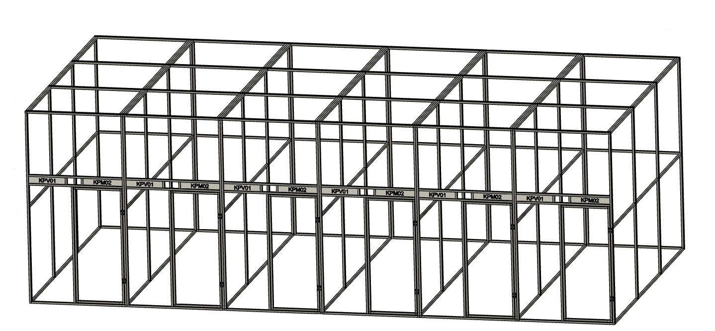 Jedná sa o voliéru o šiestich chovných boxoch. Každý box je vybavený dvoma otočnými kŕmnymi pultmi. Prvý kŕmny pult je s jednou miskou o obsahu 0,75l a je určený pre vodu. Druhý kŕmny pult má dve misky s obsahom 2 x 0,35l určené pre krmivo. Použitie dvoch kŕmnych pultov v každom boxe čiastočne zabráni znečisťovaniu vody krmivom. Krmné pulty sú z 2 mm hliníkového plechu čo činí pult pevným a takmer bezúdržbovým. Voliéra v ponuke je potiahnutá značkovým pletivom Esafort oko 19x19mm drôt 1,45mm. Pletivo je vždy k rámom uchytené značkovými nitmi Bralo. Na žiadosť zákazníka môžeme pletivo zameniť za iné z našej ponuky. Rovnako použitie profilov s povrchovou úpravou eloxovaním je na vyžiadanie a je s príplatkom 10% z celkovej ceny. Ak bude zostava umiestnená a uchytená na stenu budovy, nie je potrebné zadných panelov. Tieto panely budú z celkovej ceny odpočítané. V cene nie je započítaná doprava a prípadná montáž na mieste.