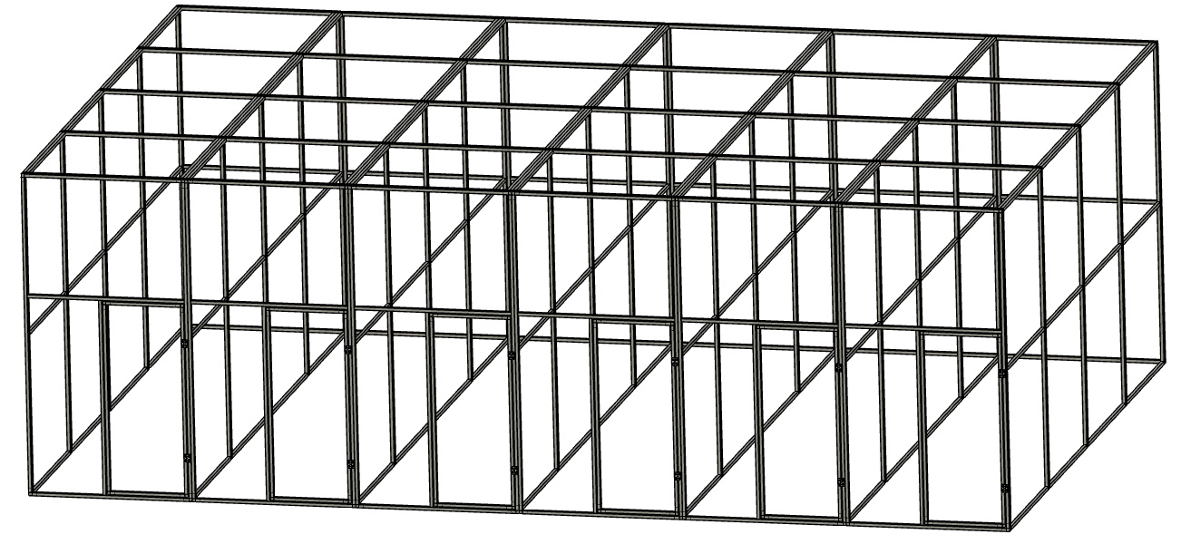 Jedná sa o voliéru o šiestich chovných boxoch. Každý box má samostatné dvierka s výškou 120 cm a šírkou 50 cm.Voliéra v ponuke je potiahnutá značkovým pletivom Esafort oko 19x19mm drôt 1,45mm. Pletivo je vždy k rámom uchytené značkovými nitmi Bralo. Na žiadosť zákazníka môžeme pletivo zameniť za iné z našej ponuky. Rovnako použitie profilov s povrchovou úpravou eloxovaním je na vyžiadanie a je s príplatkom 10% z celkovej ceny zostavy. Ak bude zostava umiestnená a uchytená na stenu budovy, nie je potrebné zadných panelov. Tieto panely budú z celkovej ceny odpočítané. V cene nie je započítaná doprava a prípadná montáž na mieste.