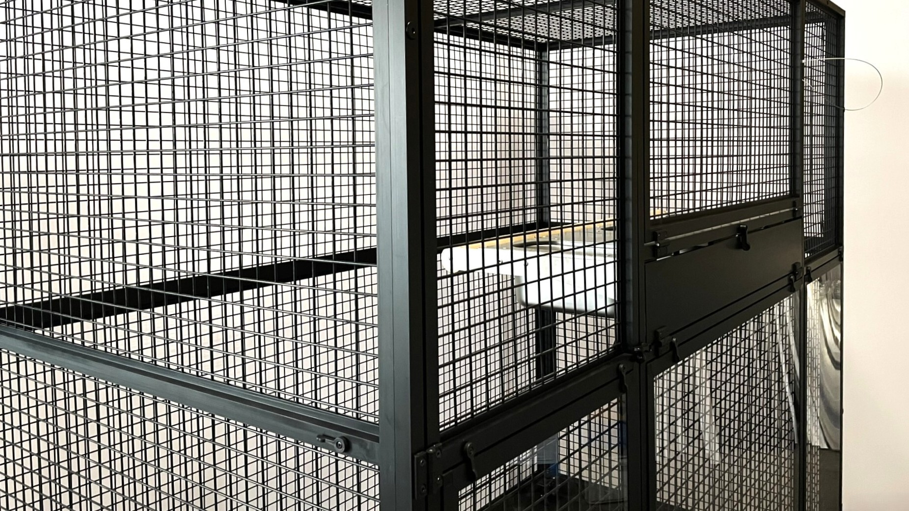 Moderná, veľmi priestranná klietka od spoločnosti Aluhobby.