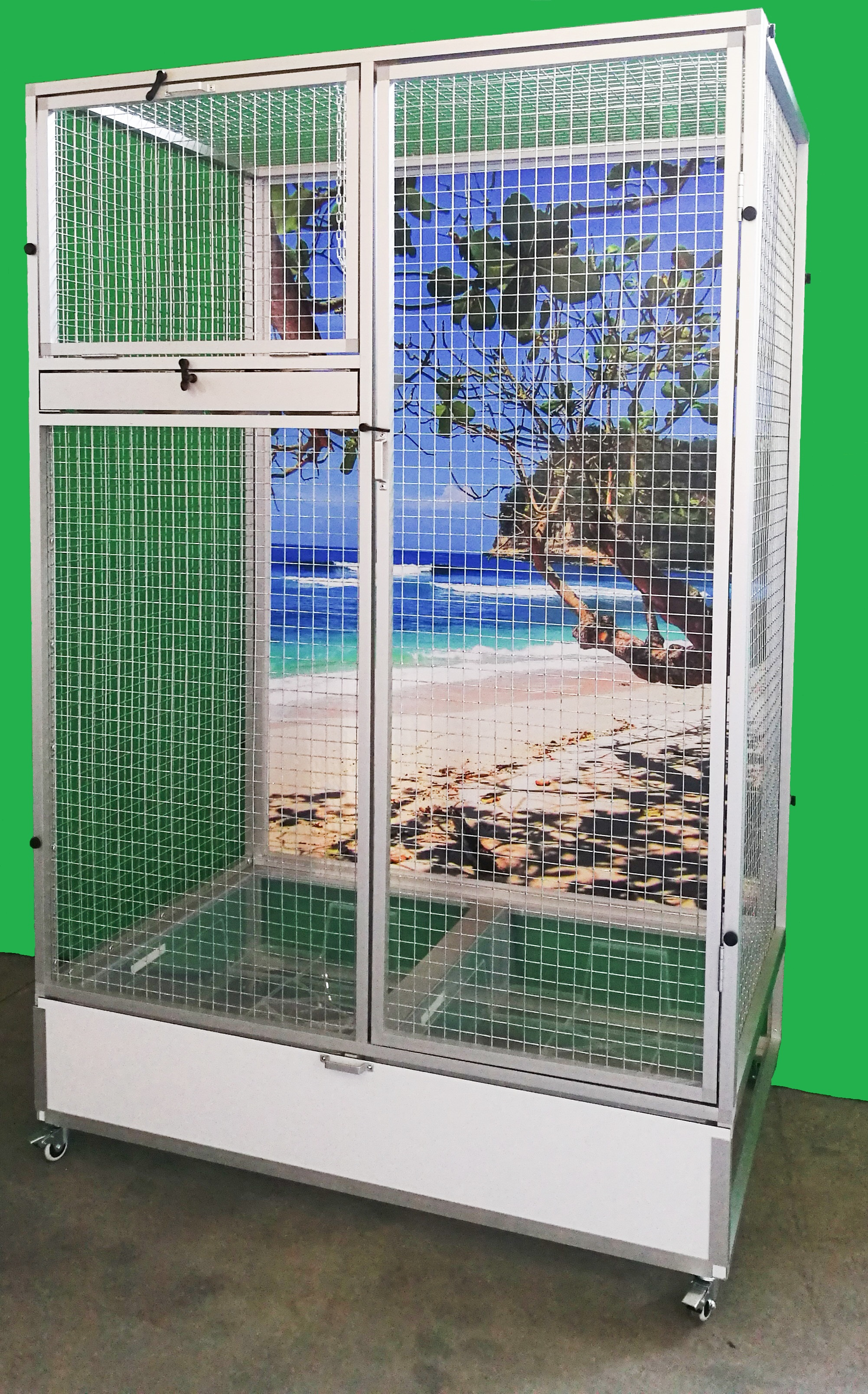 Rozmery šírka 116 cm, hĺbka 80 cm, výška 184 cm. Klietka je rozoberateľná – skladacia, čo umožňuje postaviť voliéru aj tam, kde by v minulosti bolo možné umiestniť iba klietku. Skladá sa z podvozku, prednej a zadnej steny, dvoch bočných stien a stropu. Zadná stena môže byť za príplatok polepená tapetou podľa výberu z piatich ponúkaných variantov. Tapeta je laminovaná a tým chránená proti oderu. Voliéra je postavená na samostatnom podvozku, ktorý je vybavený dvoma plastovými vaničkami. Dvom pre lepšiu manipuláciu pri upratovaní voliéry. Vaničky sú 18 cm hlboké, čo dostatočne umožňuje udržať poriadok v okolí voliéry.