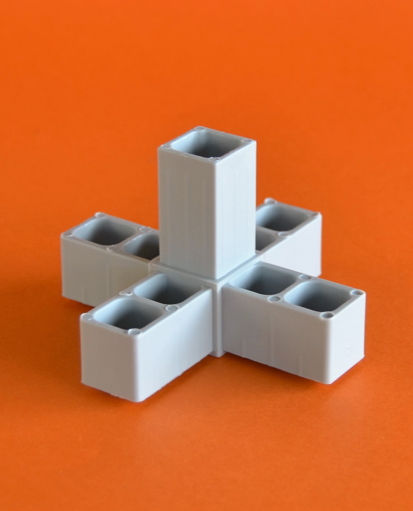 Součástí každé stavebnice konstrukce voliéry jsou hliníkové profily, spojky, krmné pulty s miskami, dvířka, panty. Krmný pult u tohoto typu stavebnic je umístěn 120cm nad zemí. Krmný pult má v sobě zamontovány dvě otočné desky. Jedna deska je určena pro umístění dvou nerezových misek o obsahu 2x 350ml.