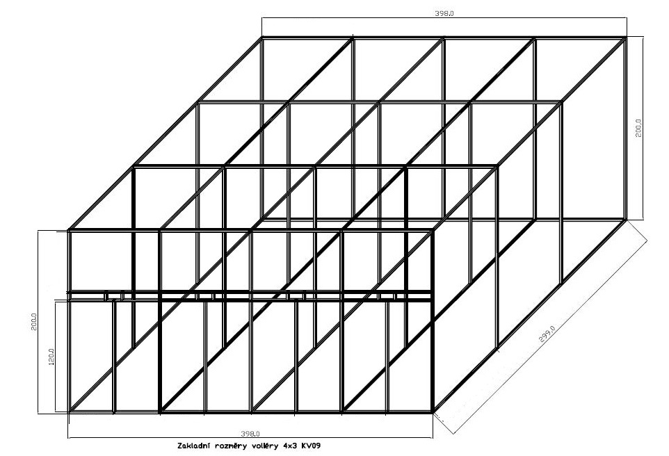 Součástí každé stavebnice konstrukce voliéry jsou hliníkové profily, spojky, krmné pulty s miskami, dvířka, panty. Krmný pult u tohoto typu stavebnic je umístěn 120cm nad zemí. Krmný pult má v sobě zamontovány dvě otočné desky. Jedna deska je určena pro umístění dvou nerezových misek o obsahu 2x 350ml.