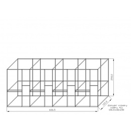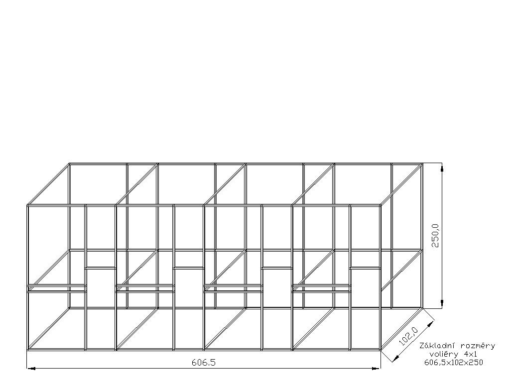 Konstrukce voliér z profilu 25x25mm jsou navrženy především pro chov středních a velkých papoušku. Šíře jednoho boxu je cca 153 cm. Konstrukce po sestavení tvoří jeden celek. Na vyžádání můžeme dodat za příplatek konstrukci i ve stříbrném eloxovaném provedení, kde se cena konstrukce navýší o cca 13 %. Součásti stavebnice jsou dvířka do voliéry, panty a petlička. Rozměr samotných dvířek jsou: výška 134cm, šíře 48cm. Součástí stavebnice je rovněž krmný nerezový pult, kde zákazník má na výběr ze tří typů KPG05 , KPG07, KPG11. Vždy se jedná o krmné pulty zásuvné nerezové s gastro nádobami. Gastro nádoby mají na výšku 6 cm. Krmný pult KPG 11 jako jediný nabízí i možnost záměny misek s menší hloubkou. Místo 6 cm na 4 cm. Vybraný typ je potřeba uvézt do poznámek. Tyto krmné pulty oproti otočným krmným pultům mají hned několik výhod. Nádobu z krmného pultu nelze vytáhnout zvířetem uvnitř voliéry. Před krmným pultem lze umístit bidlo. Což otočný krmný pult neumožňuje. Nádoby pro svůj tvar elipsy a hloubku mají větší obsah než misky kulaté. Pletivo a úchytový materiál, není součástí stavebnice.