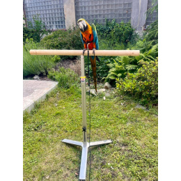 Skládací teleskopické bidlo je vyrobeno z hliníkových profilů a nerezové nohy, která je uzpůsobena i na nerovný terén.