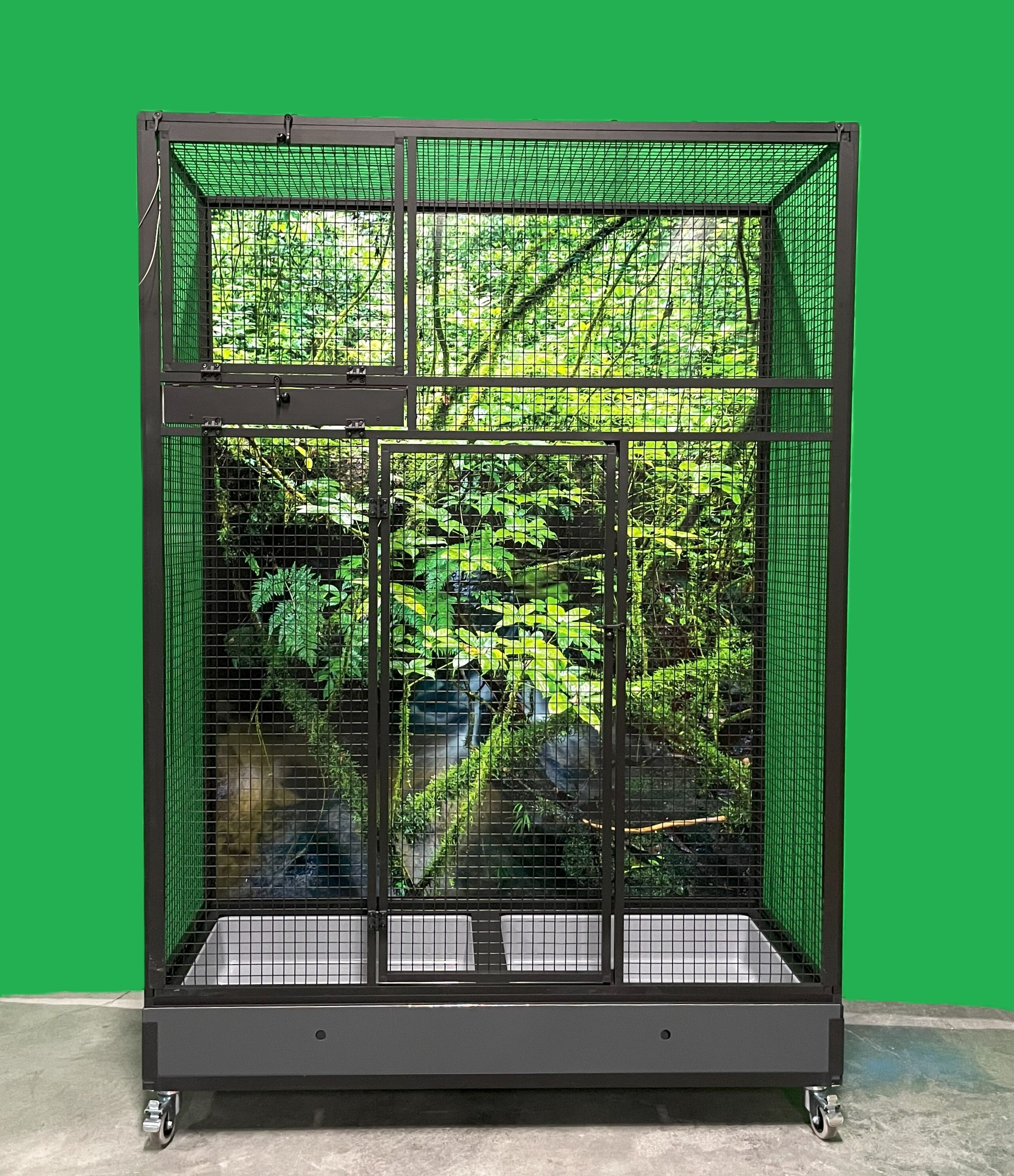 Konstrukce klece je vyrobena z hliníkových profilů s povrchovou úpravou eloxováním do černé matné barvy. Použito je velmi kvalitní pletivo značky Esafort oko 19x19, drát 1,5 mm. Pletivo je nabarveno do černé matné barvy, což umožňuje lepší pohled na chované zvíře.