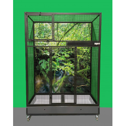 Voliéra je vybavena kolečky, snadno se dá přemístit na terasu domu či bytu. Váha klece cca 20 kg.