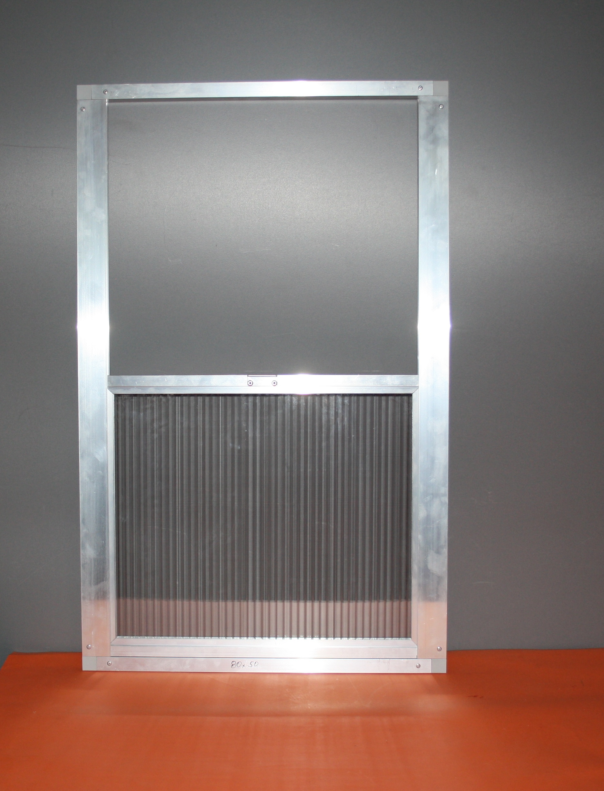 Rozměry výletové okna jsou výška 77 cm a šířka 50 cm jsou obvodové rozměry venkovního rámu. Výletové okno je vyrobeno z hliníkových profilů. Pojezd okna je vypodložen plastovým materiálem pro lepší posuv. Síla polykarbonátu je 16 mm.