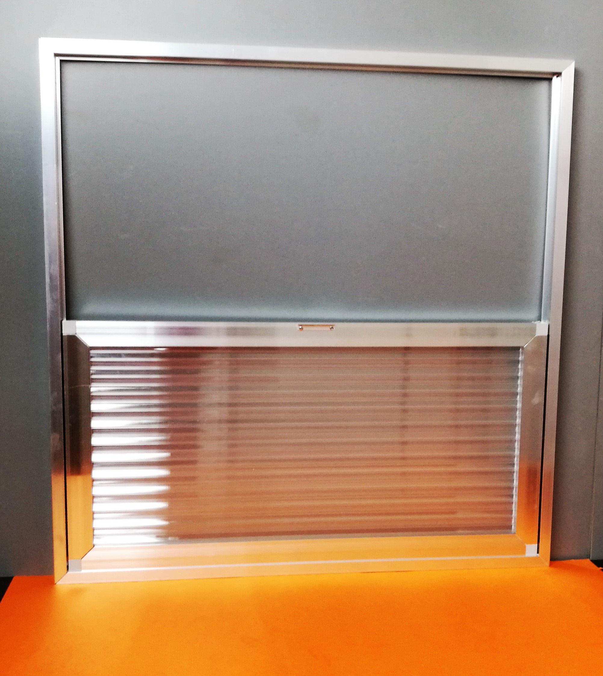 Pojezd okna je vypodložen plastovým materiálem pro lepší posuv. Síla polykarbonátu 16 mm.
