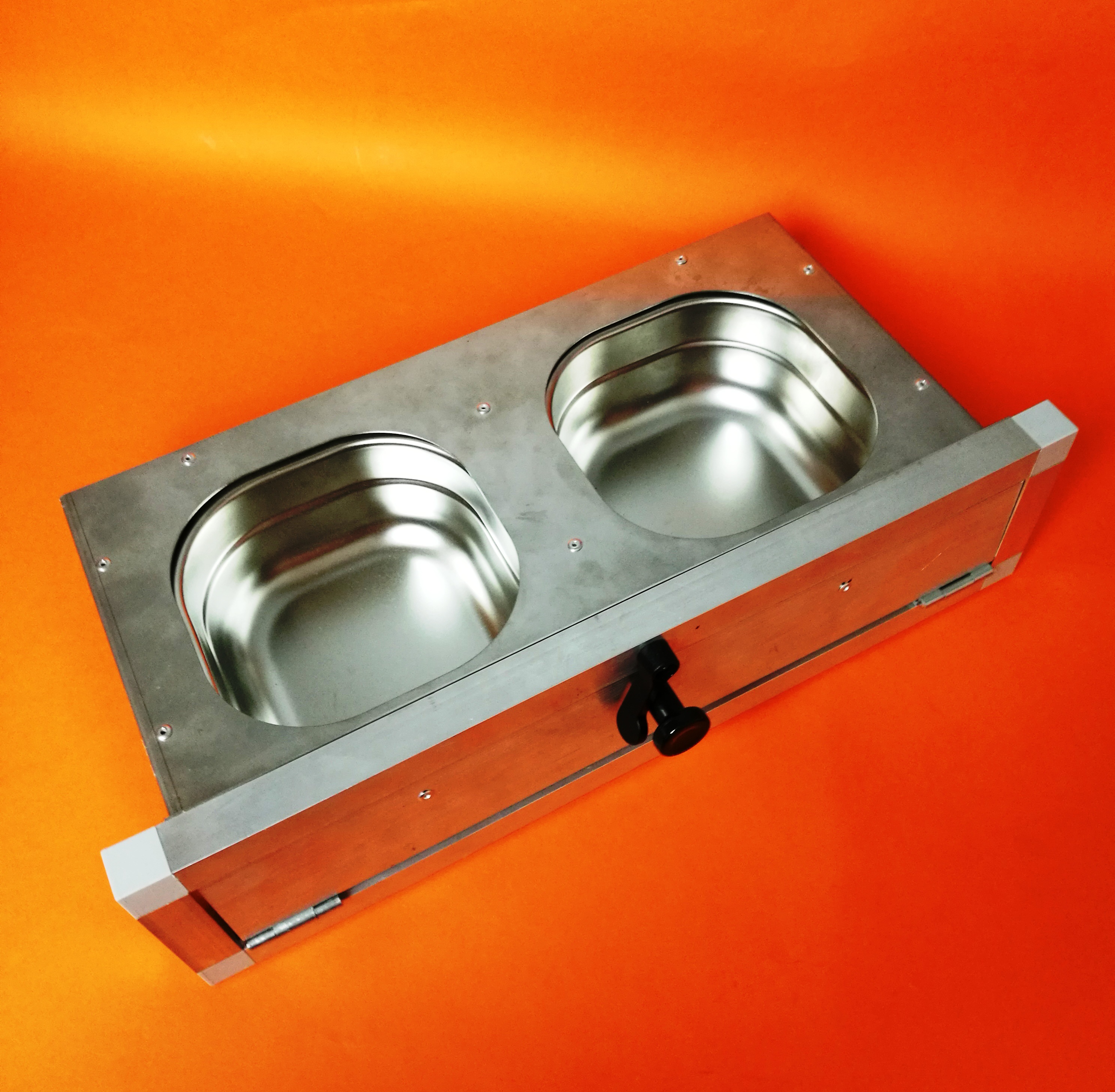 Krmný pult obsahuje 2 misky o objemu 1,3 l na vodu a druhou misku o objemu 1,3 l na zrno, ovoce či zeleninu.