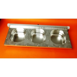 Zásuvný nerezový pult se vyznačuje především v kvalitě použitých materiálů a v provedení. Zásuvné krmné pulty s gastronádobami to jen potvrzují. Gastronádoby nejsou pro svou hloubku 60 mm vhodné pro drobné ptactvo. Síla nerezového plechu použitého na základní desku je 1 mm. Možnost kombinací s jinými zásuvnými pulty, případně i s otočnými pulty nabízí chovateli velkou možnost splnění svých představ, jak zajistit obsluhu svého chovatelského zařízení co nejlépe. Zásuvné i otočné krmné pulty (mimo krmný pult pro Ary) mají na výšku (včetně rámečku) 11 cm. Krmný pult je dodáván ve složeném stavu včetně rámečku. Rámeček je tvořen z hliníkového profilu 20x20x1,5 mm. Pokud se zákazník rozhodne zabudovat krmný pult přímo do konstrukce voliéry je ideální nechat si zaslat krmný pult a rámeček samostatně. V rámečku pak lze jednoduše zaměnit spojky a zabudovat pult přímo do konstrukce.