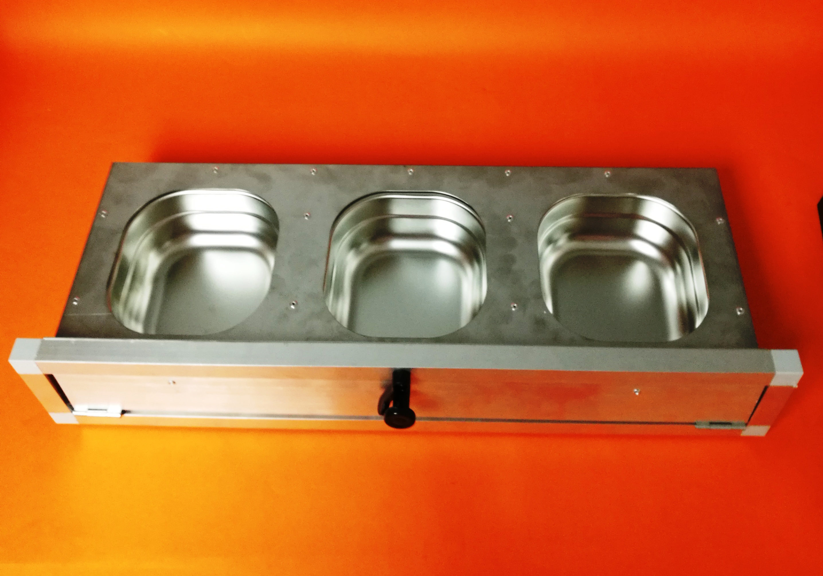 Krmný pult obsahuje 3 misky o objemu 1,3 l na vodu, druhou misku o objemu 1,3 l na ovoce, zeleninu a třetí misku o objemu 1,3 l na zrno.