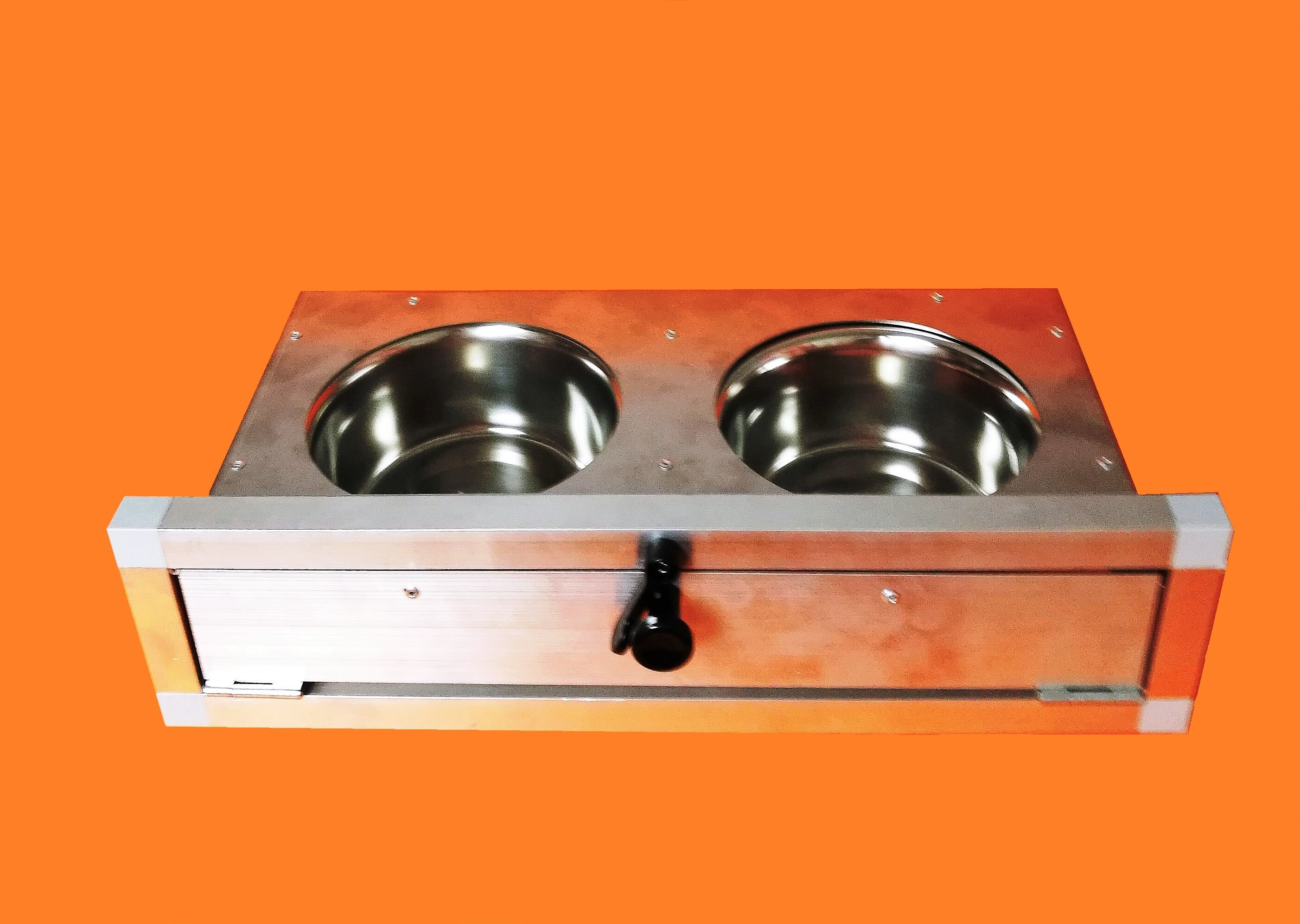Krmný pult obsahuje jednu misku o objemu 750ml na vodu, druhou misku o objemu 750ml na ovoce, zeleninu.