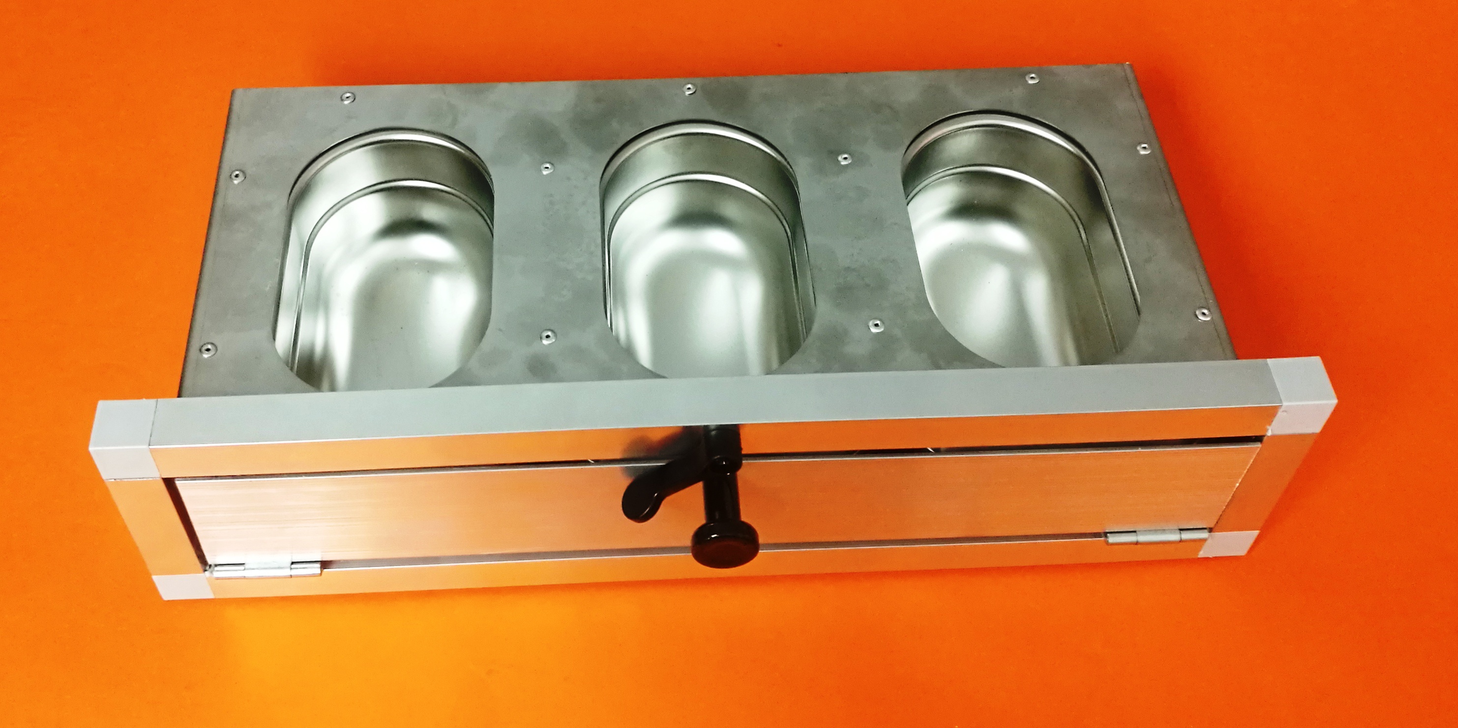 Zásuvný nerezový pult se vyznačuje především v kvalitě použitých materiálů a v provedení. Zásuvné krmné pulty s gastronádobami to jen potvrzují. Gastronádoby nejsou pro svou hloubku 60 mm vhodné pro drobné ptactvo. Síla nerezového plechu použitého na základní desku je 1 mm. Možnost kombinací s jinými zásuvnými pulty, případně i s otočnými pulty nabízí chovateli velkou možnost splnění svých představ, jak zajistit obsluhu svého chovatelského zařízení co nejlépe. Zásuvné i otočné krmné pulty (mimo krmný pult pro Ary) mají na výšku (včetně rámečku) 11 cm. Krmný pult je dodáván ve složeném stavu včetně rámečku. Rámeček je tvořen z hliníkového profilu 20x20x1,5 mm. Pokud se zákazník rozhodne zabudovat krmný pult přímo do konstrukce voliéry, je ideální nechat si zaslat krmný pult a rámeček samostatně. V rámečku pak lze jednoduše zaměnit spojky a zabudovat pult přímo do konstrukce.